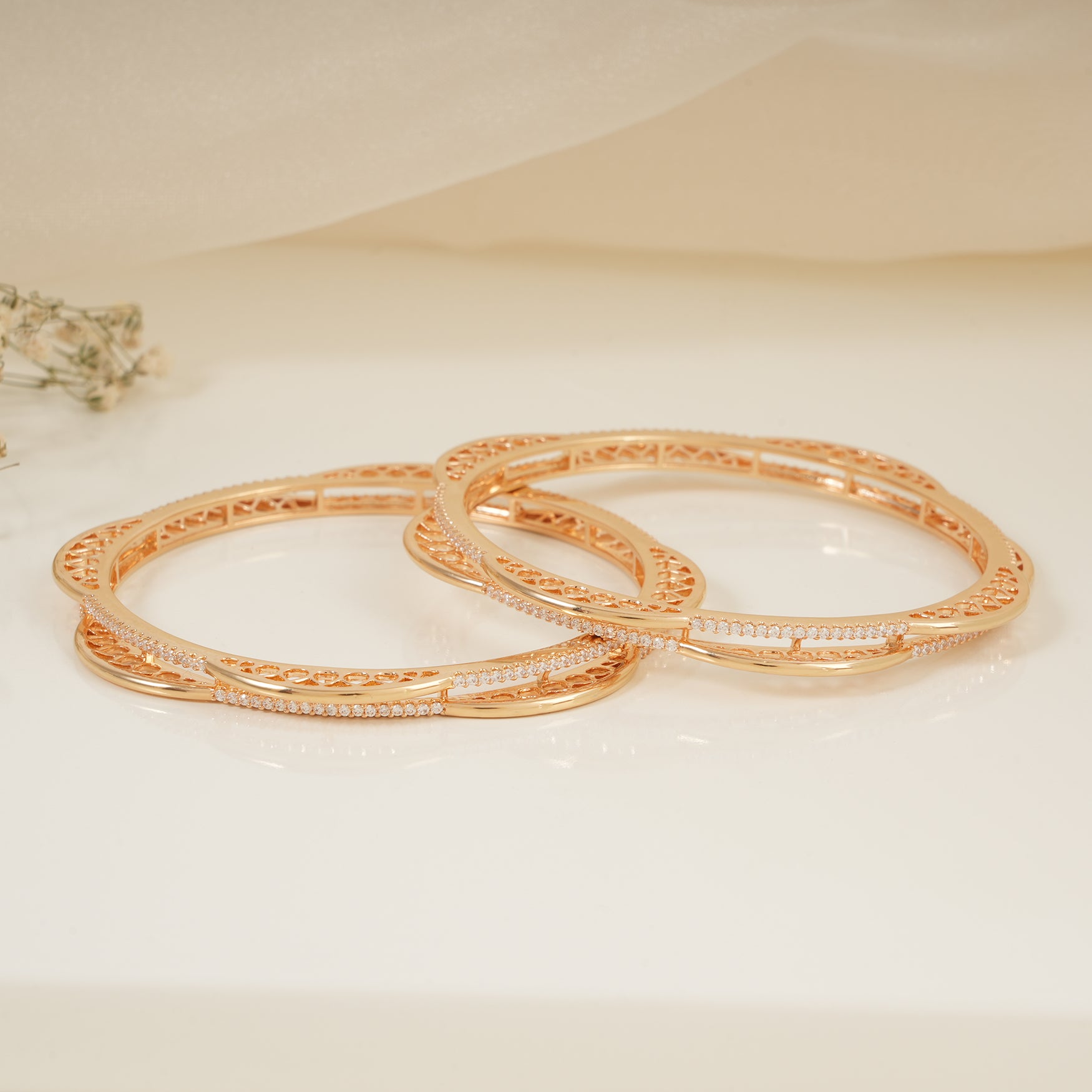 Cute elegant cz diamond gold plated floral bangle set