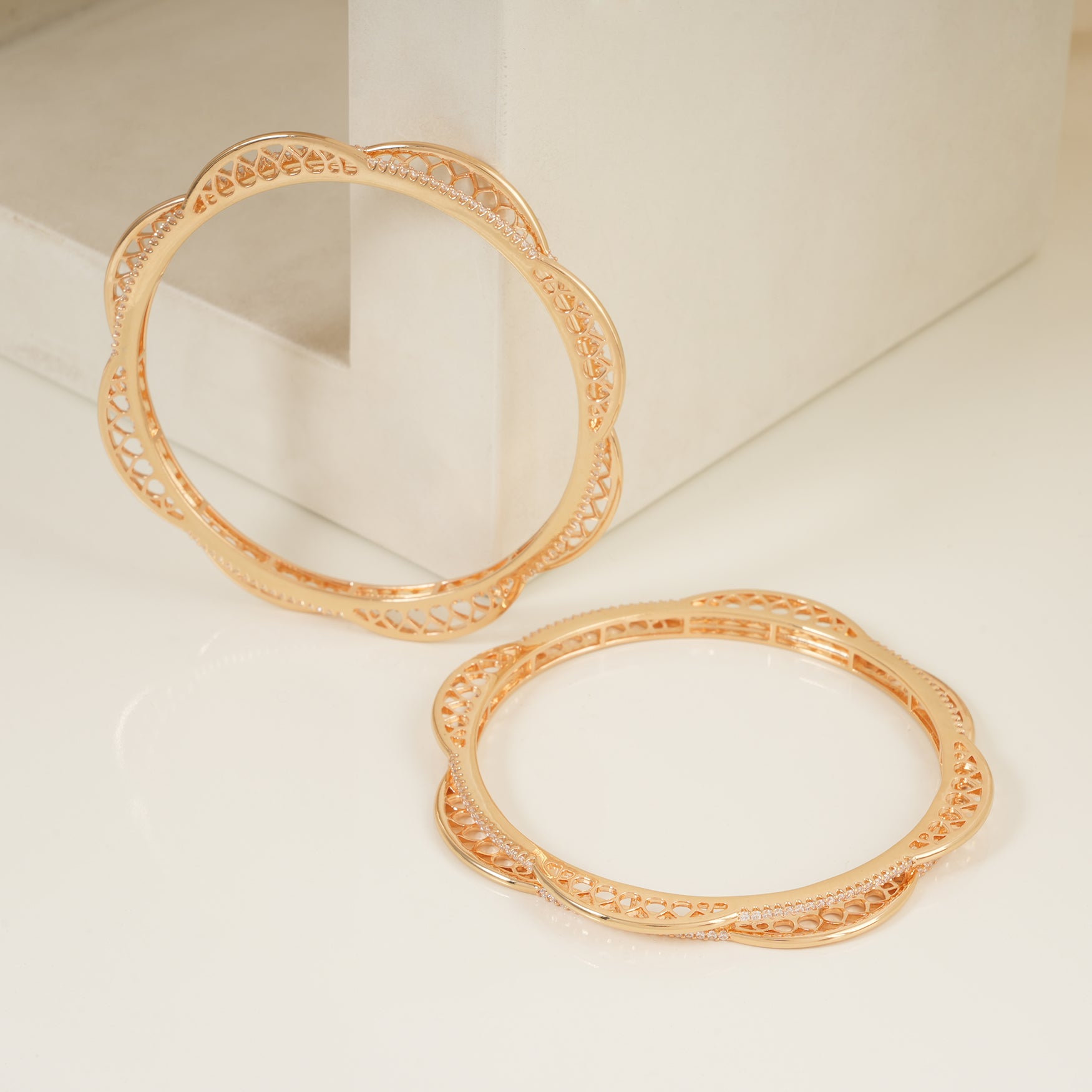 Buy Cute elegant cz diamond gold plated floral bangle set online and get free shipping even on Cash on Delivery