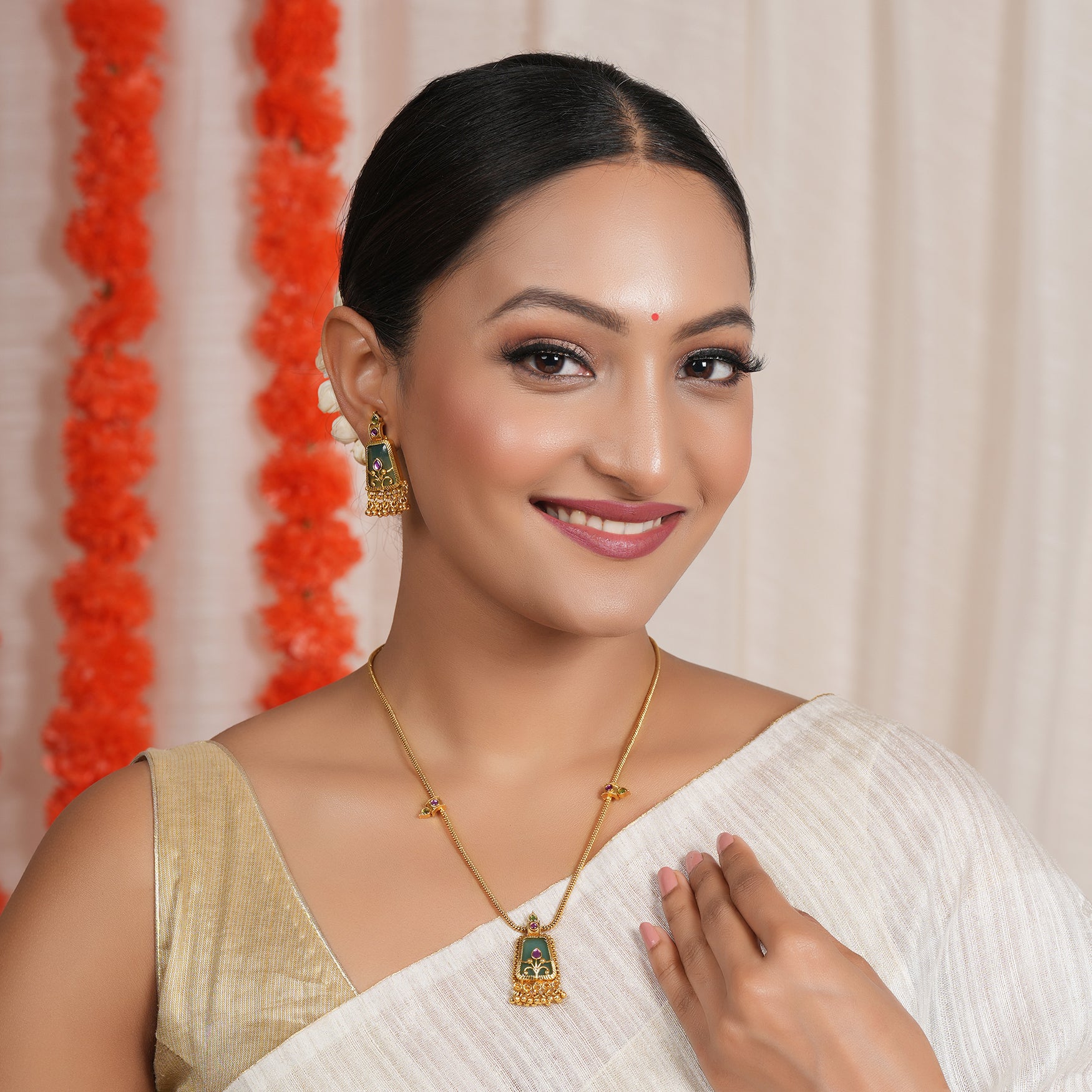 Cute elegant emerald stone pendant set is a show-stopping, traditional Indian necklace set with gold plating and handwork. Buy Cute elegant emerald stone pendant set and get free shipping even on Cash on Delivery.