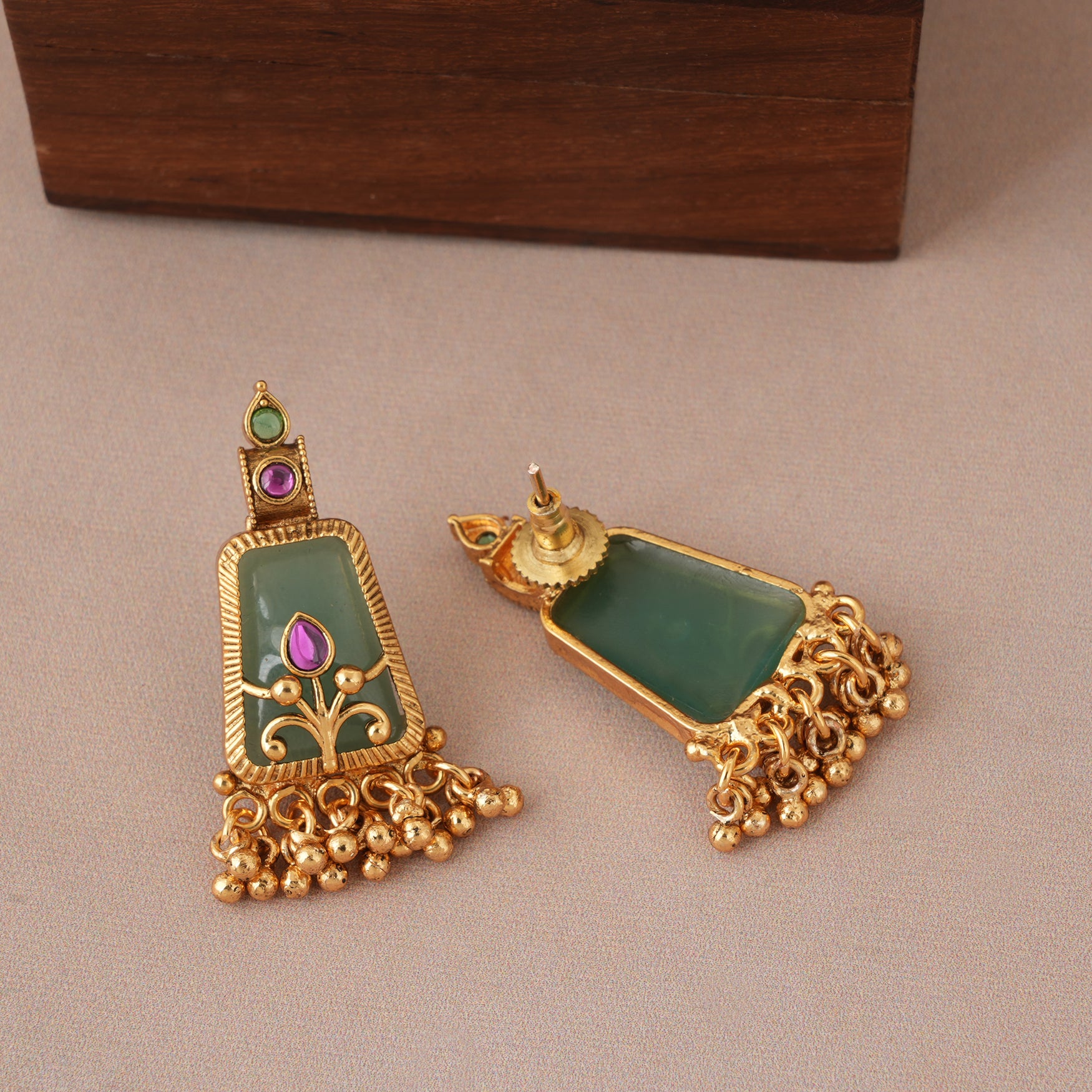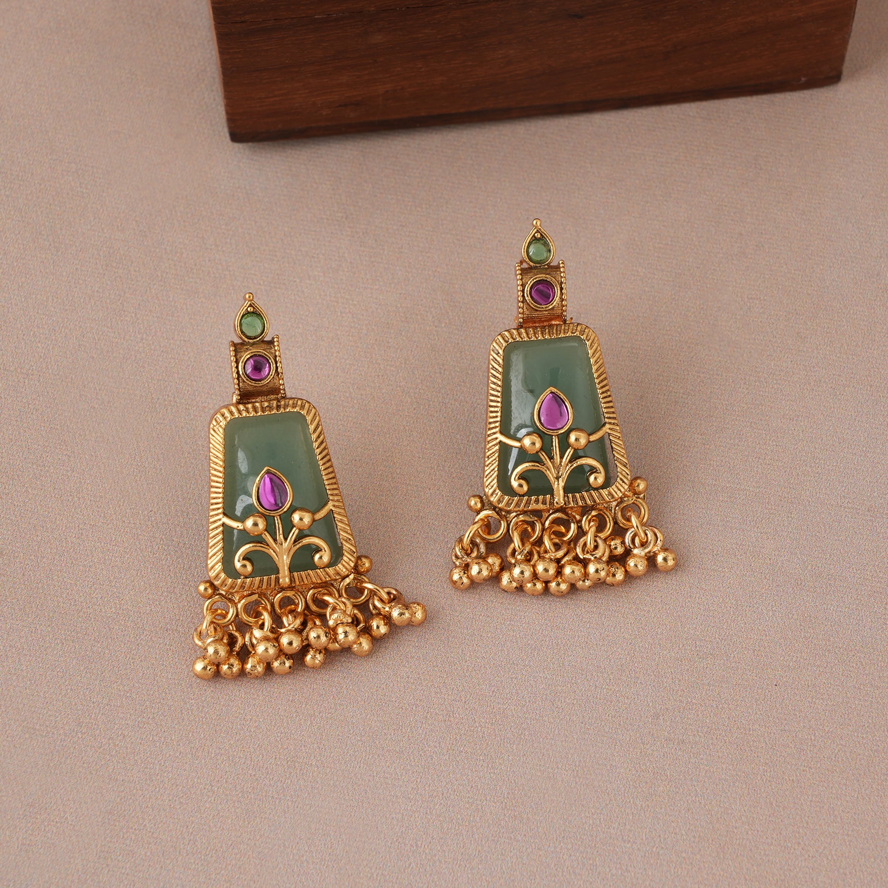 NOTE: This Cute elegant emerald stone pendant set has been crafted by hand and may have slight irregularities or imperfections in color or embellishment. These irregularities are the result of human involvement in the process and add to the finished product's charm while ensuring you have a one-of-a-kind piece.