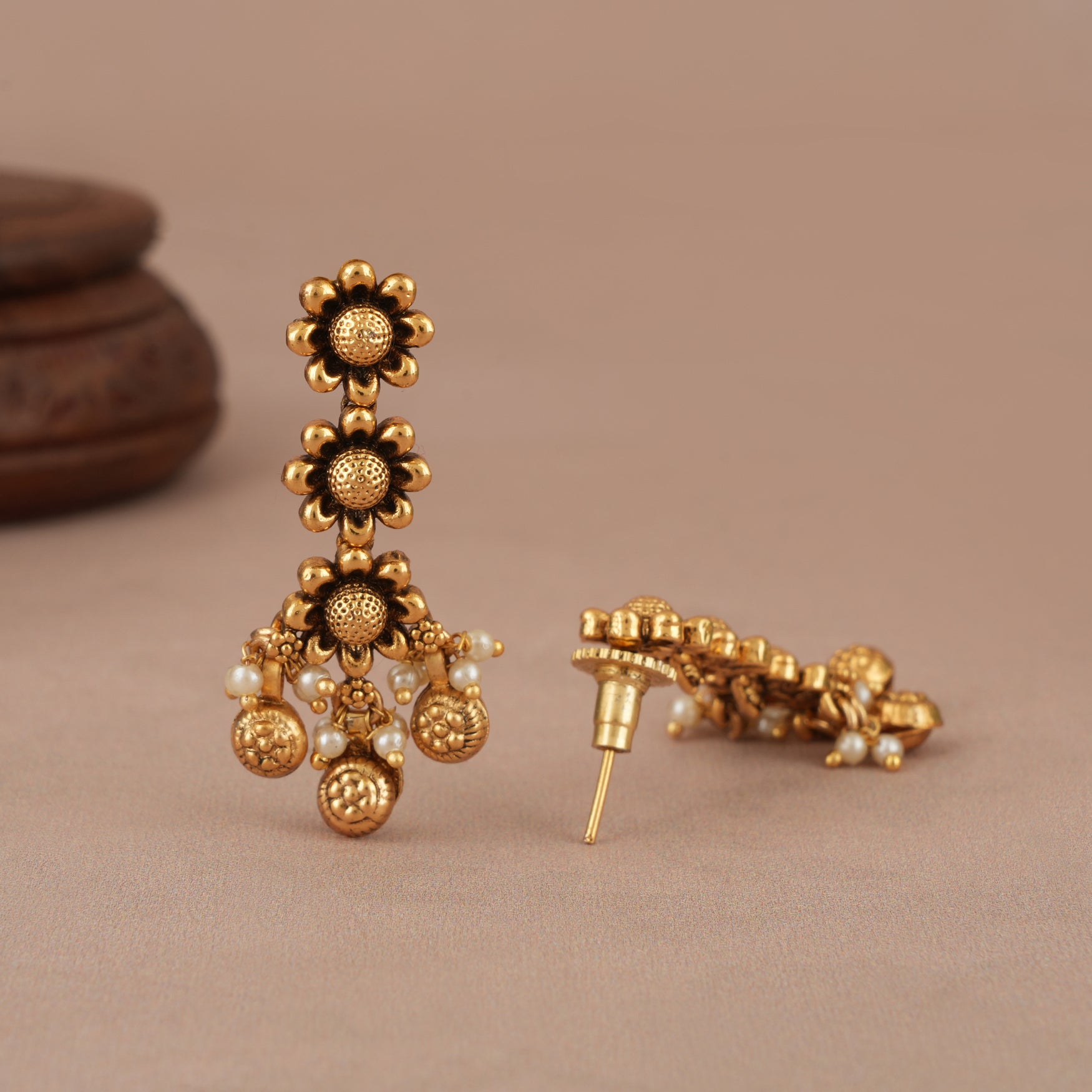 Cute floral antique gold choker necklace set are show-stopping and come in traditional Indian design with gold plating and handwork.