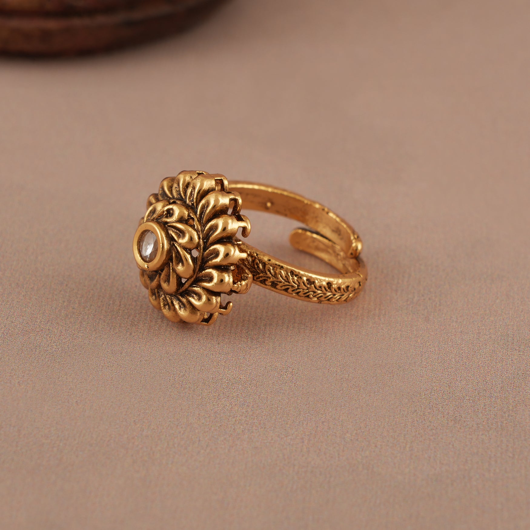 Cute floral antique gold kundan finger ring