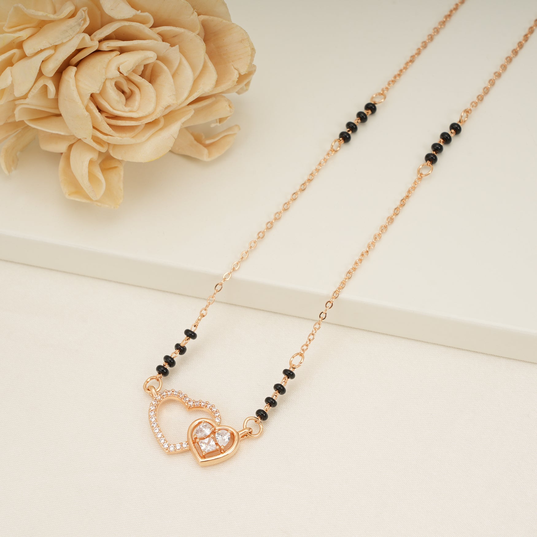 Cute gold plated heart mangalstura for women of brass alloy with gold plating. The necklace length is 20 inches, and the necklace lock is a Hook.