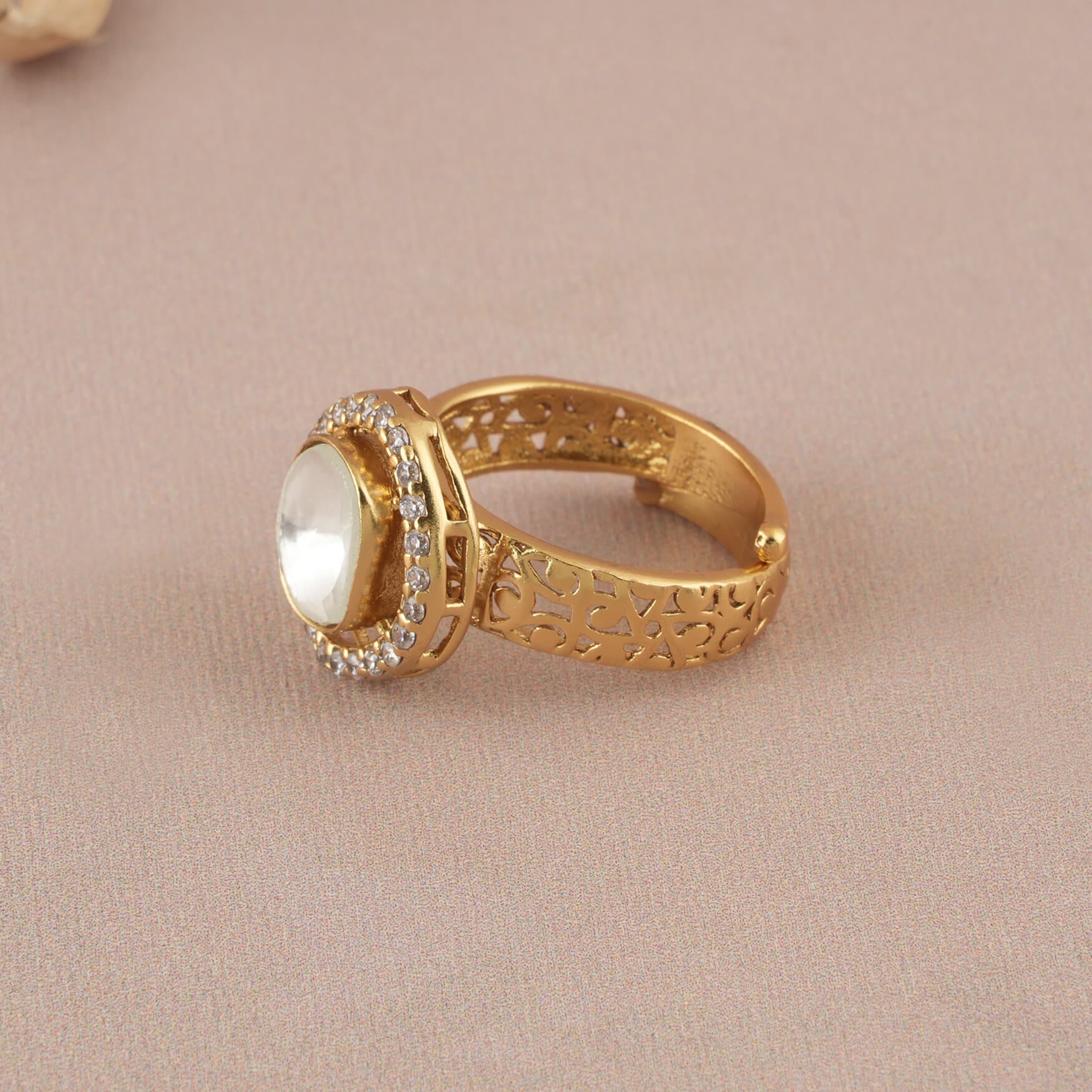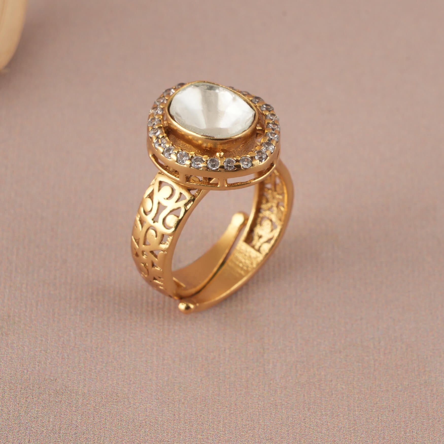 Cute gold plated kundan finger ring for women is a timeless piece that will provide you with years of beautiful wear. The metal-brass alloy with gold plating is made to last.