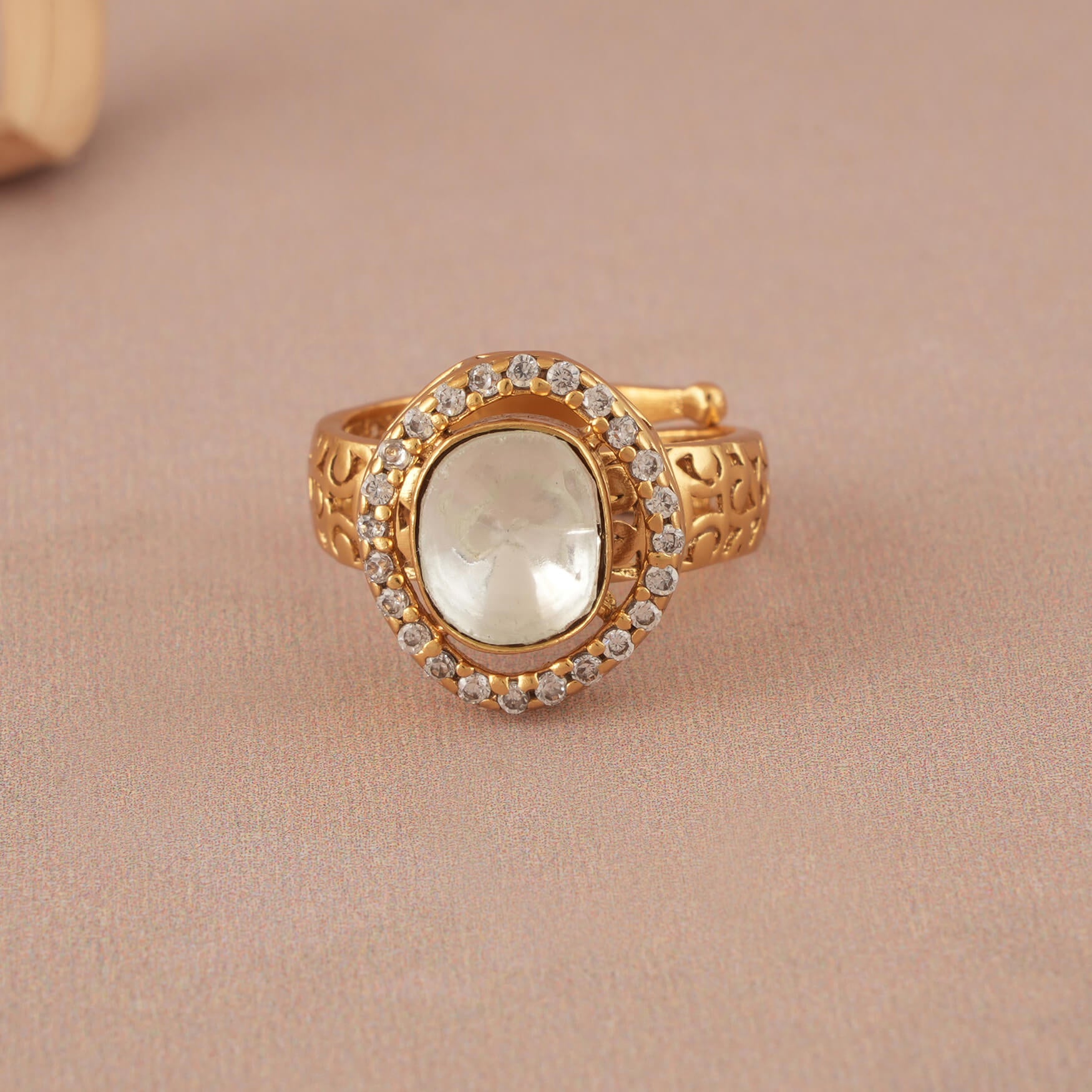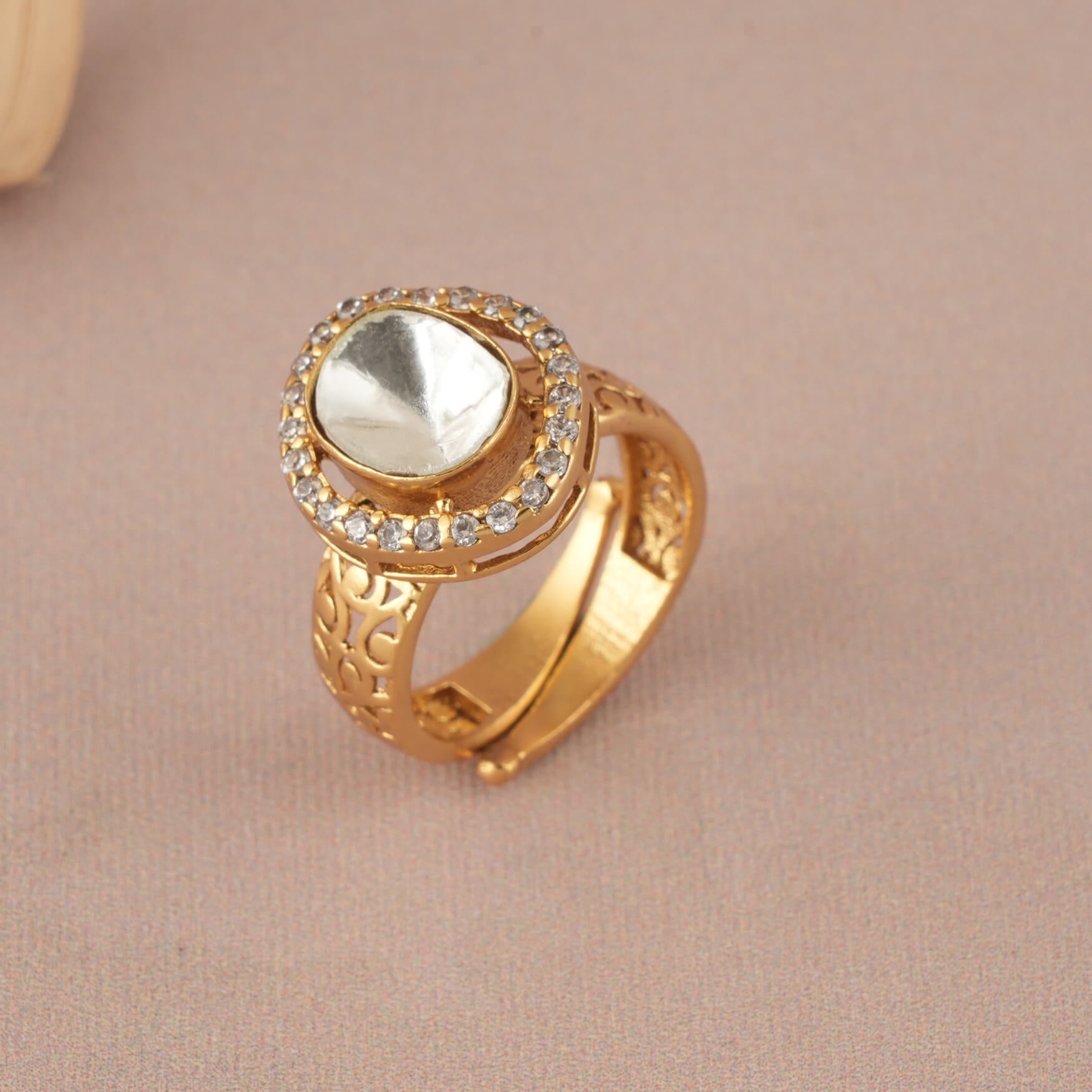 NOTE: This has been crafted by hand and Cute gold plated kundan finger ring for women   have slight irregularities or imperfections in color or embellishment.
