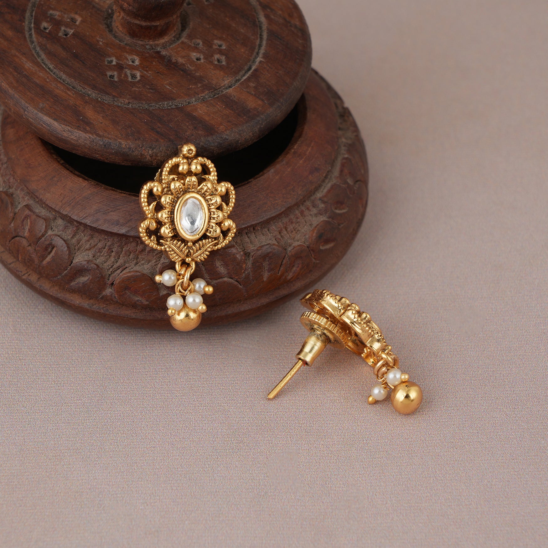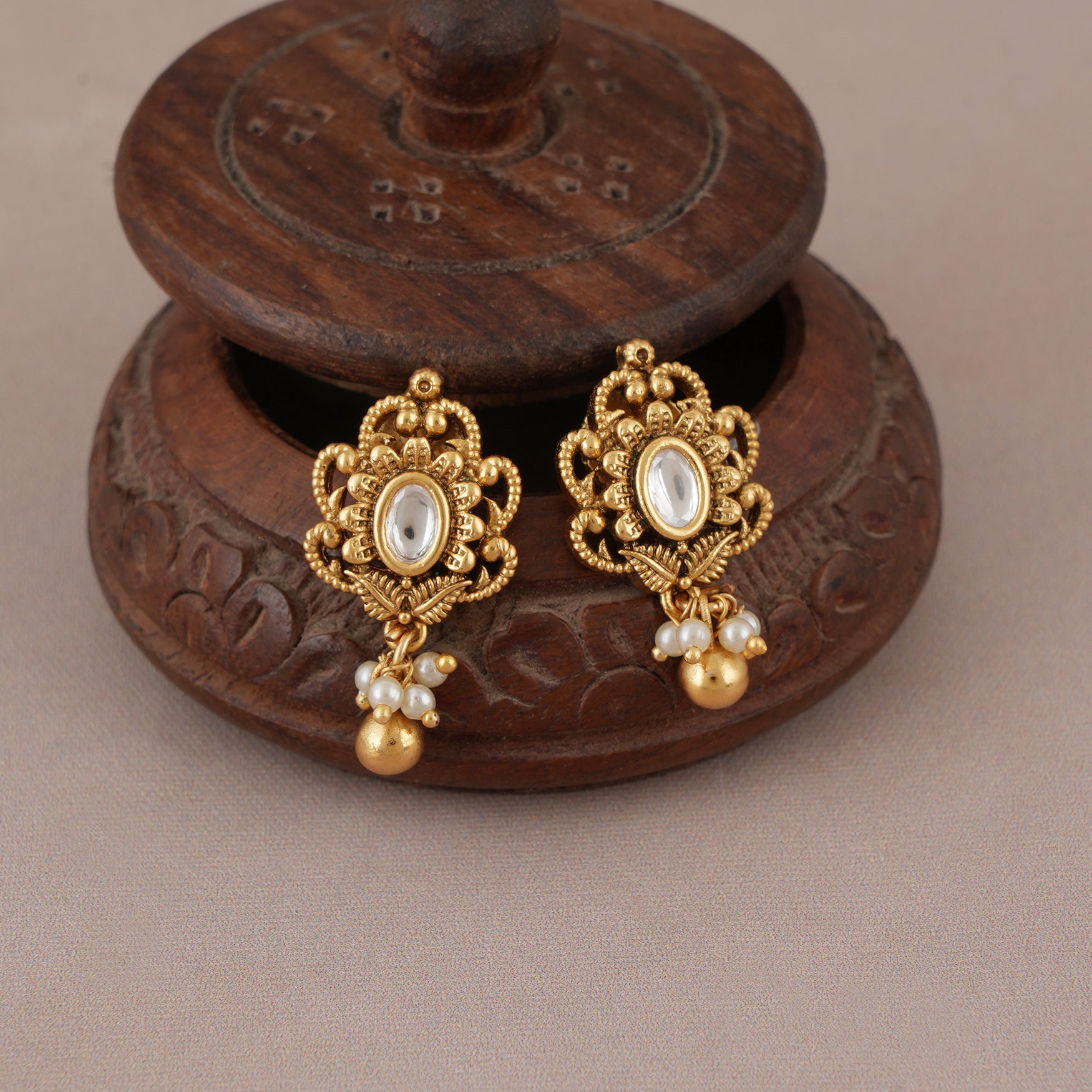 Cute kundan antique gold stud earring   are show-stopping and come in contemporary Indian design with gold plating and handwork.Cute kundan antique gold stud earring and get free shipping even on Cash on Delivery.