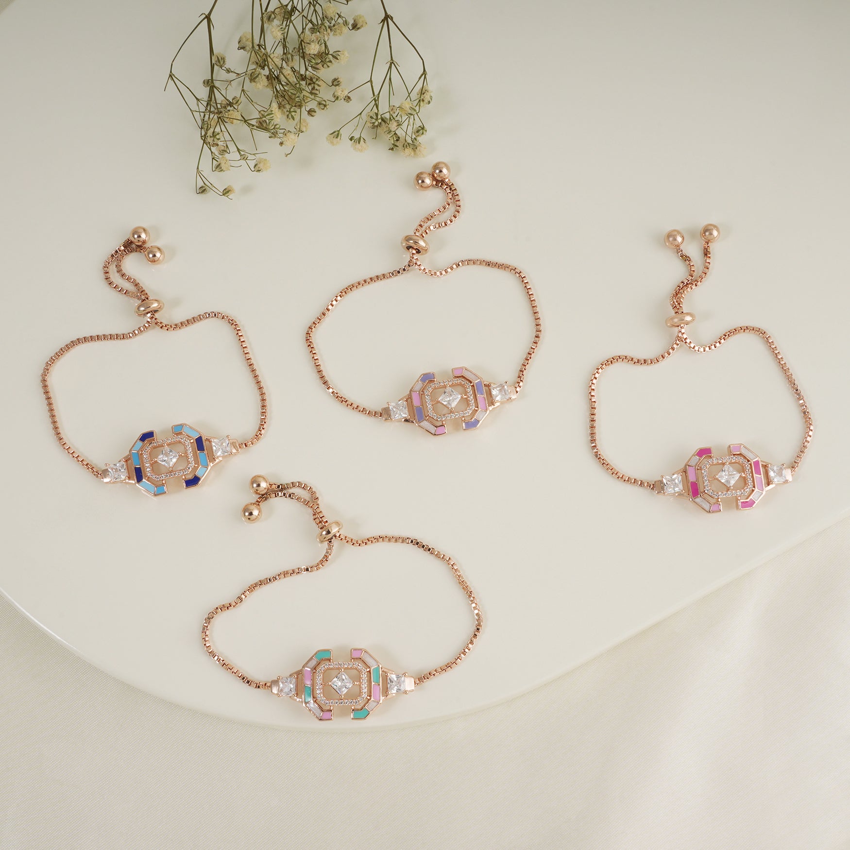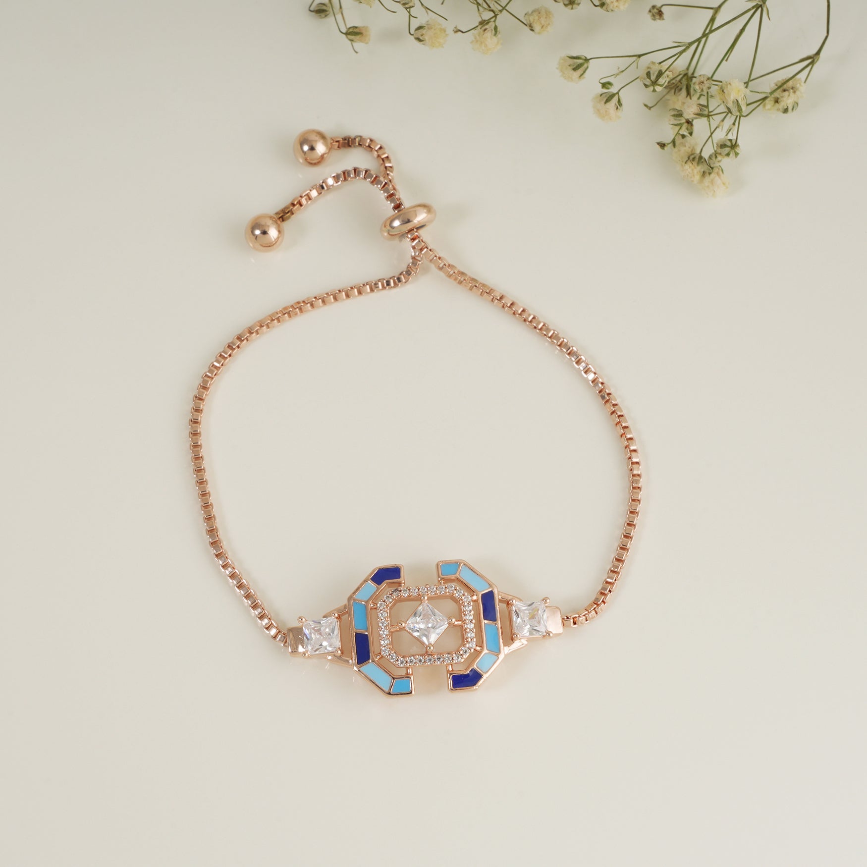 NOTE: This Cute meenakari free size rose gold bracelet has been crafted by hand and may have slight irregularities or imperfections in color or embellishment.