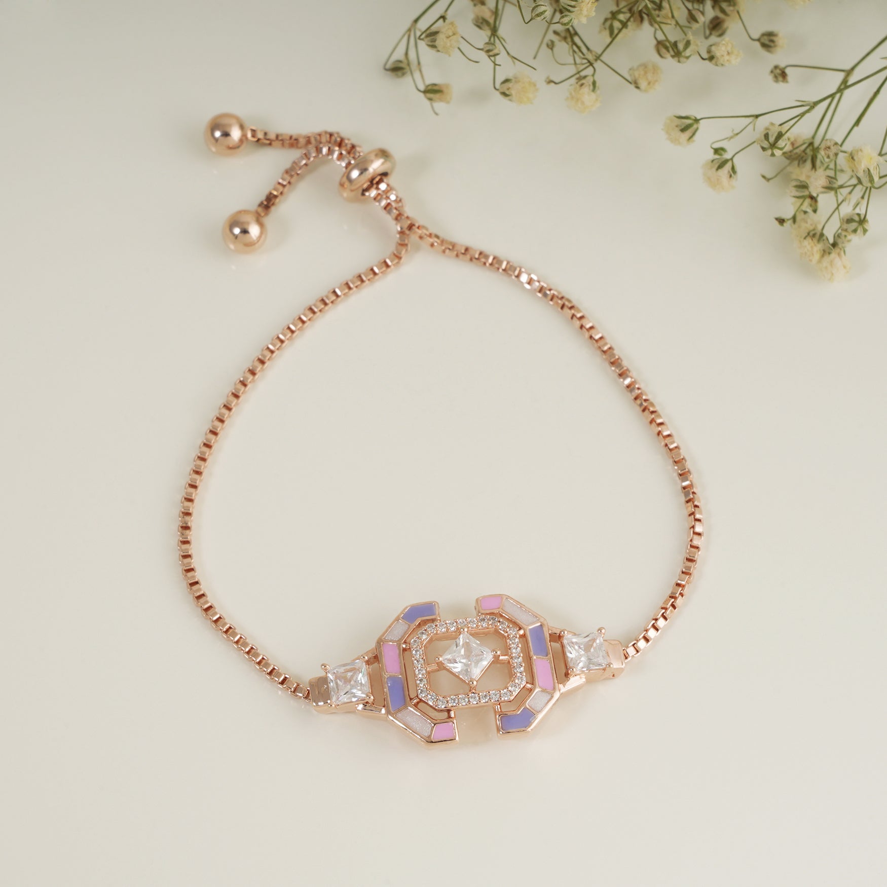 Cute meenakari free size rose gold bracelet
