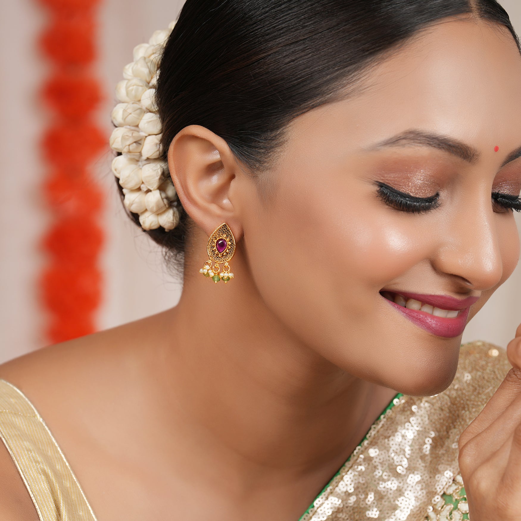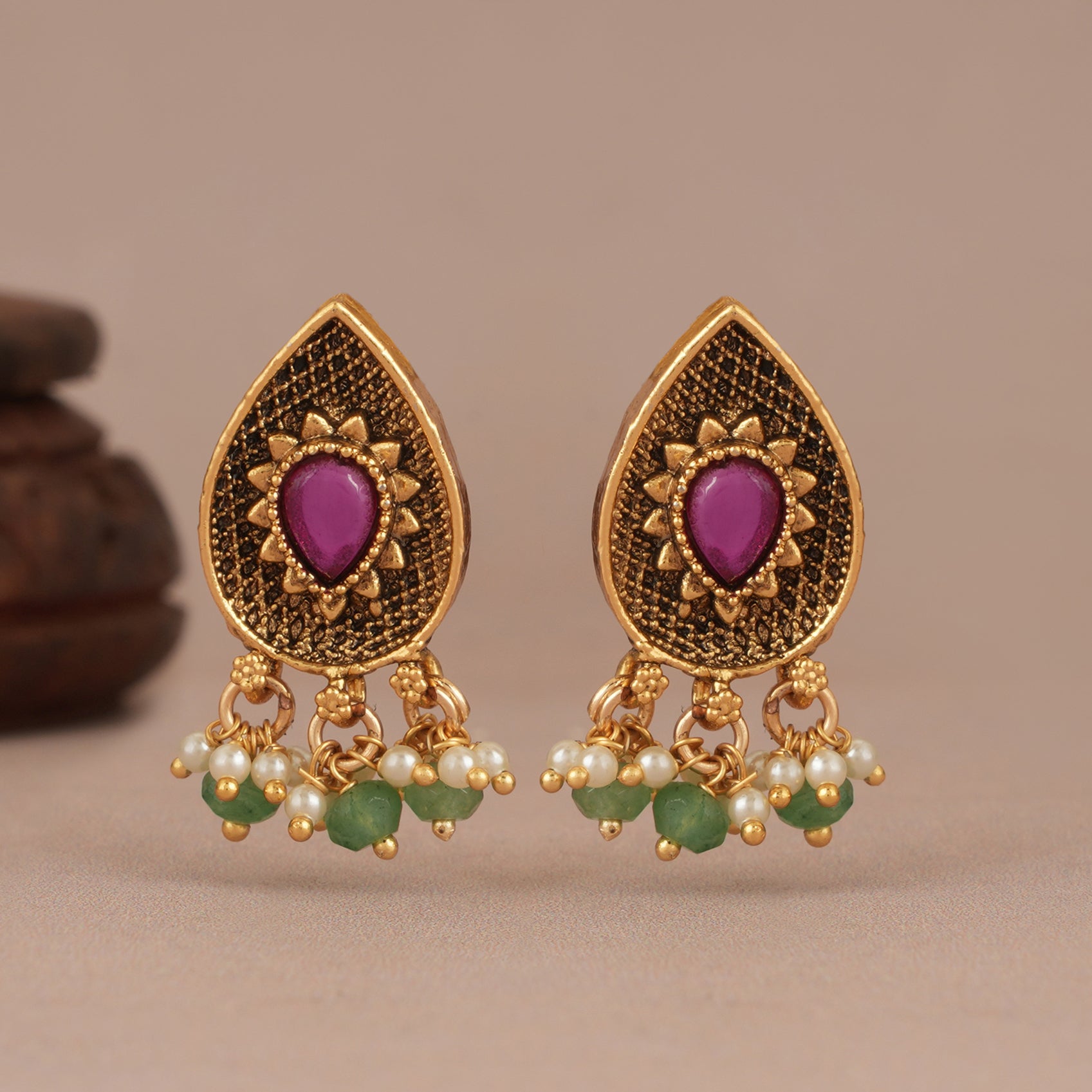 NOTE: These Cute pear shape antique gold green stone drop earring    been crafted by hand and may have slight irregularities or imperfections in colour or embellishment. These irregularities are the result of human involvement in the process and add to the finished product's charm while ensuring you have a one-of-a-kind piece.