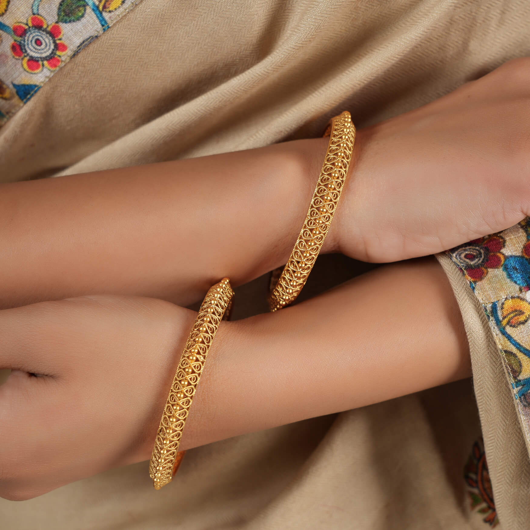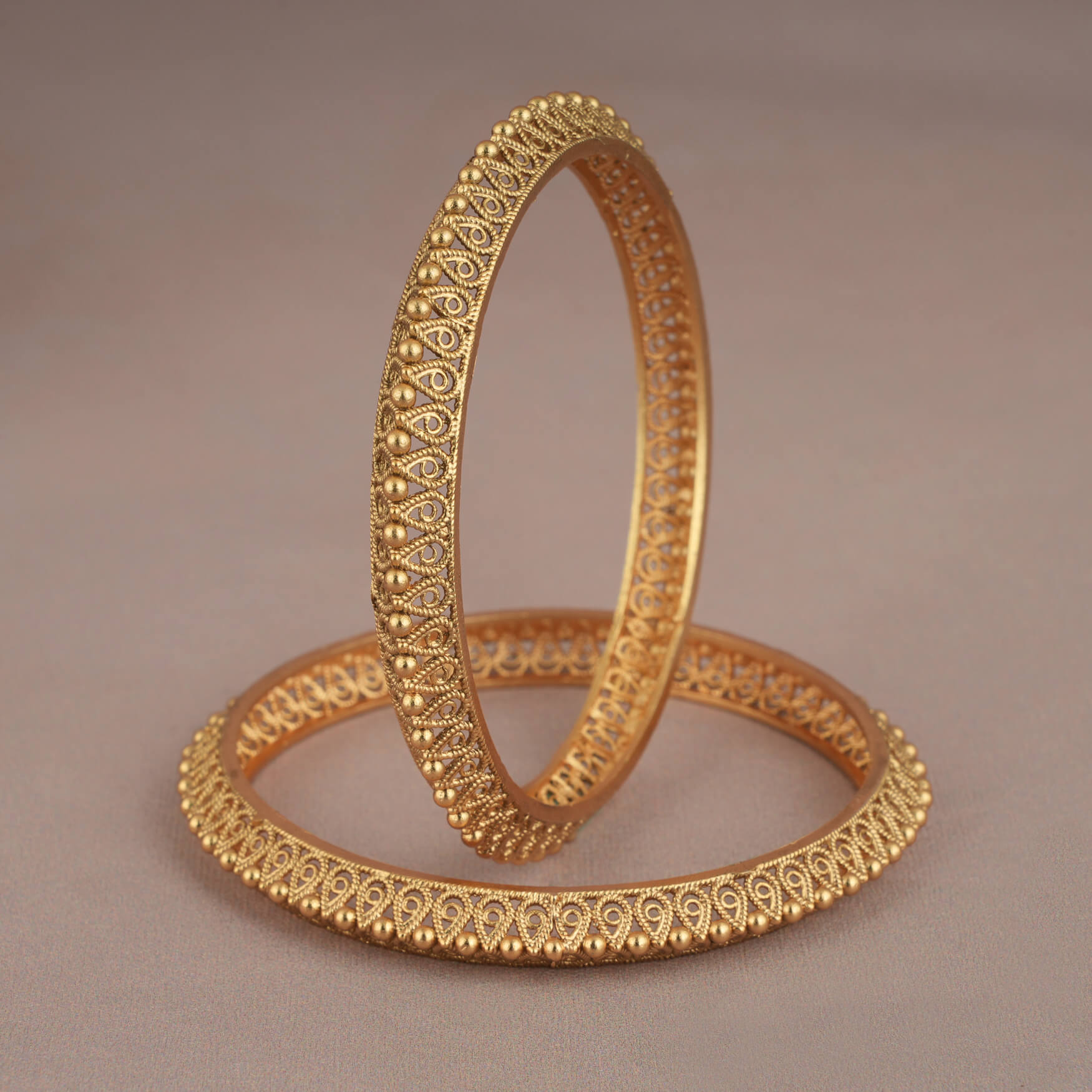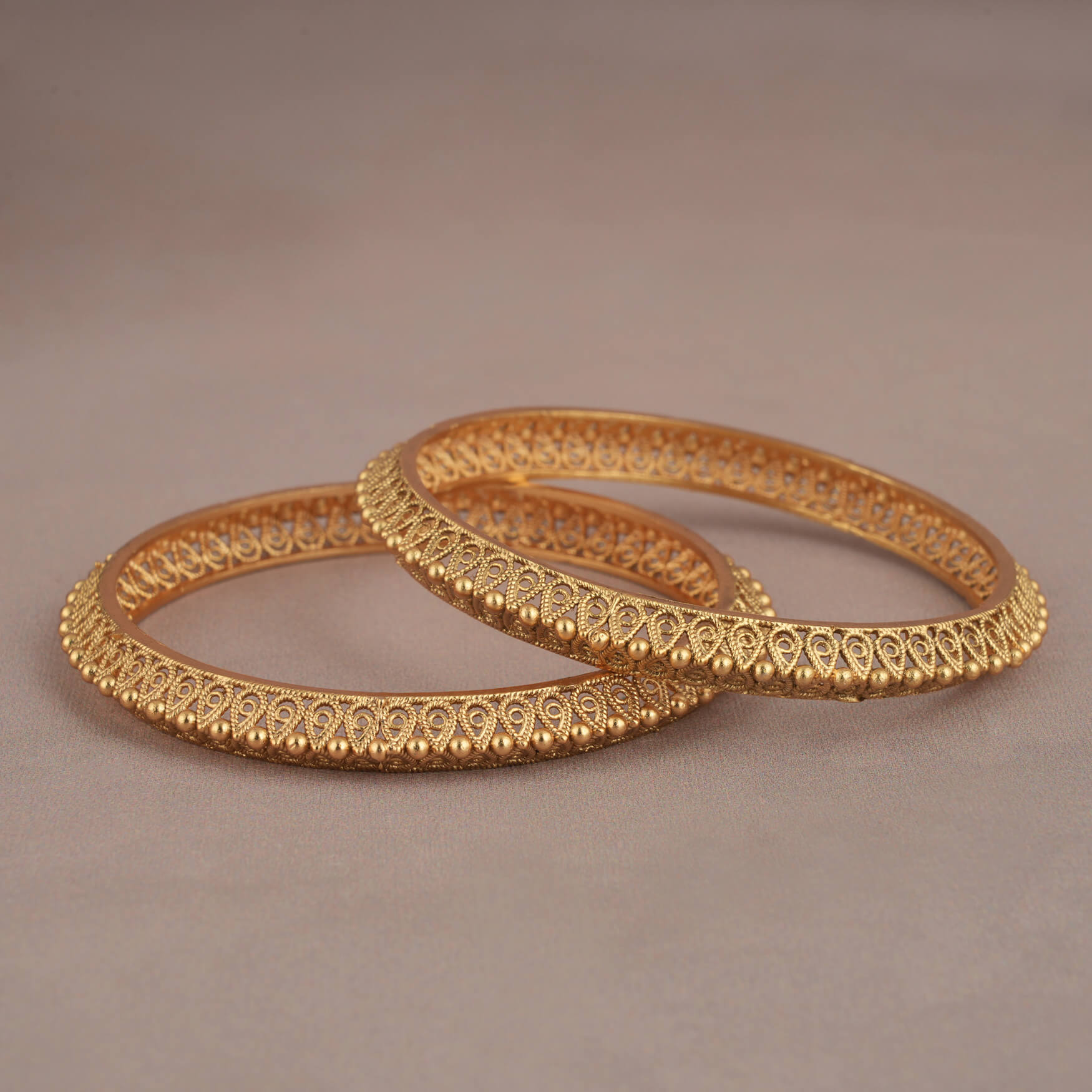 NOTE: This Cute plain gold plated pear shaped bangle set  has been crafted by hand and may have slight irregularities or imperfections in color or embellishment. These irregularities are the result of human involvement in the process and add to the finished product's charm while ensuring you have a one-of-a-kind piece.