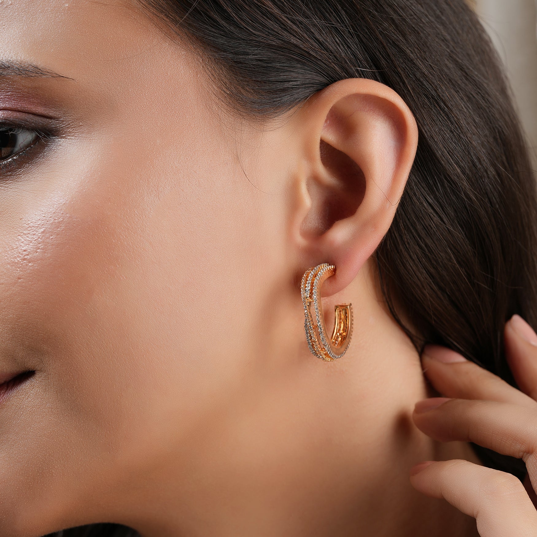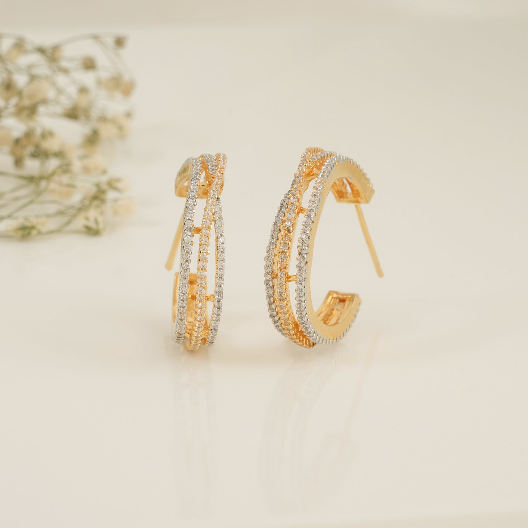Cute round cz diamond hoop for women are show-stopping and come in contemporary Indian design with gold plating and handwork.