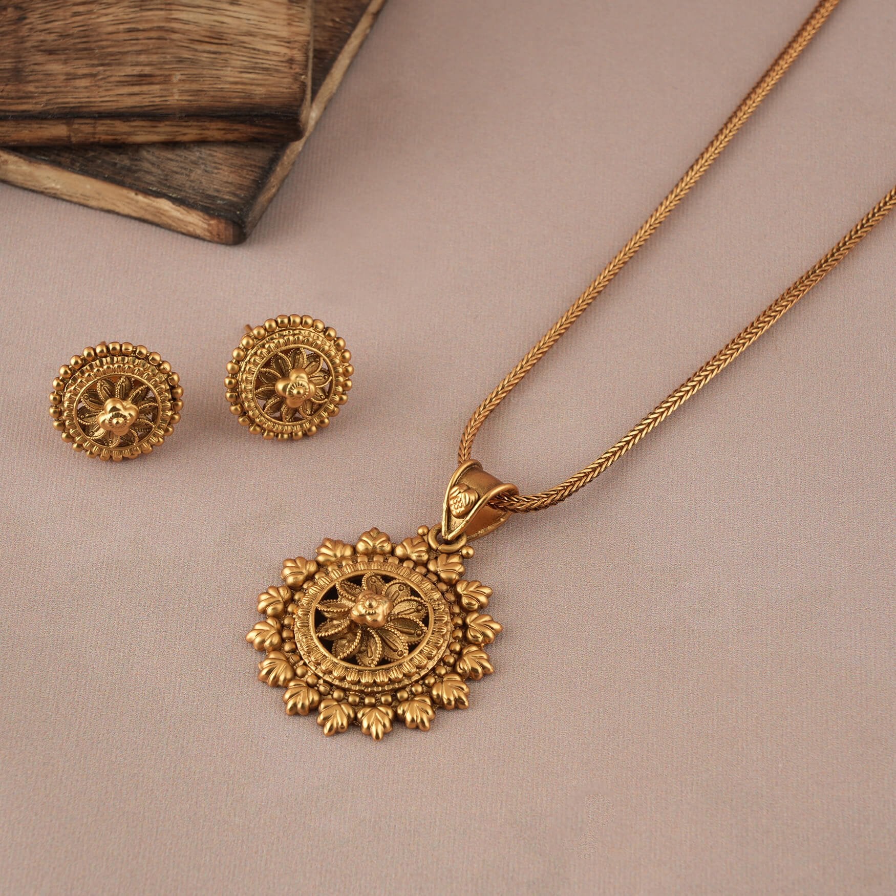 NOTE:  Cute sleek antique gold plated pendant set is has been crafted by hand and may have slight irregularities or imperfections in color or embellishment. These irregularities are the result of human involvement in the process and add to the finished product's charm while ensuring you have a one-of-a-kind piece.