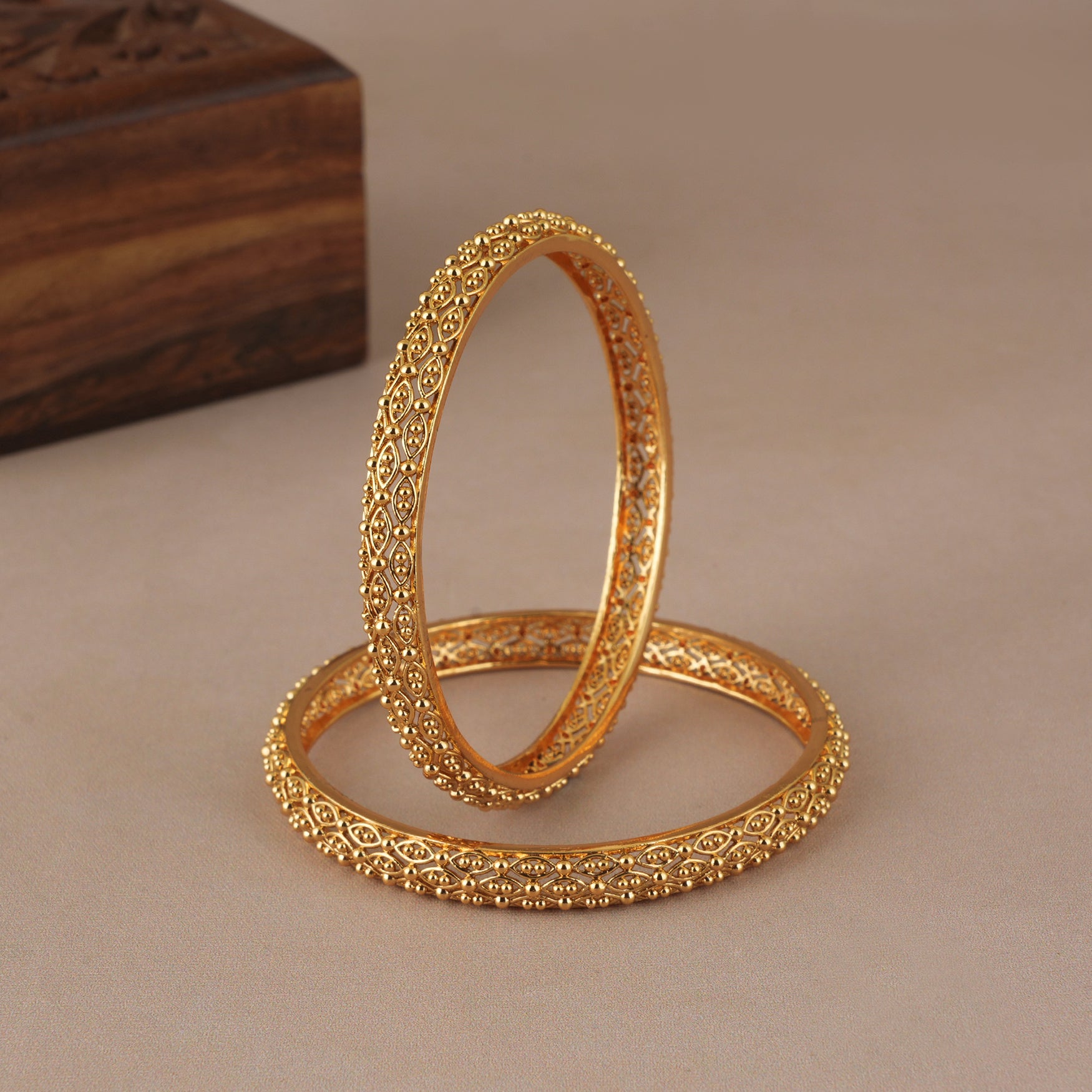 NOTE: This Cute sleek plain gold plated bangle set has been crafted by hand and may have slight irregularities or imperfections in color or embellishment.