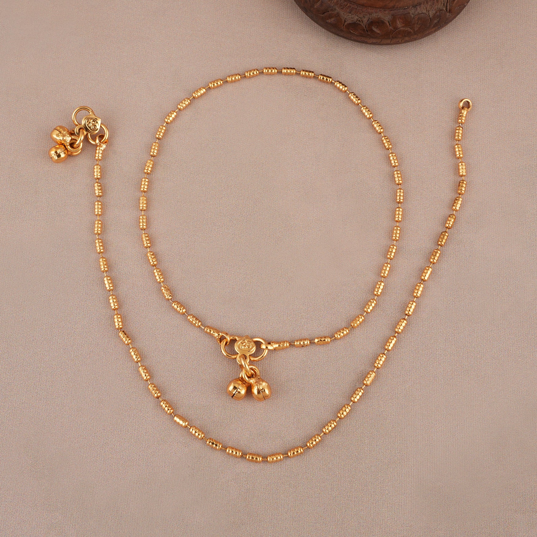 Delicate antique gold plain anklet set   is show-stopping and comes in traditional Indian design with gold plating and handwork. Elegant plain antique gold anklet set  free shipping even on Cash on Delivery