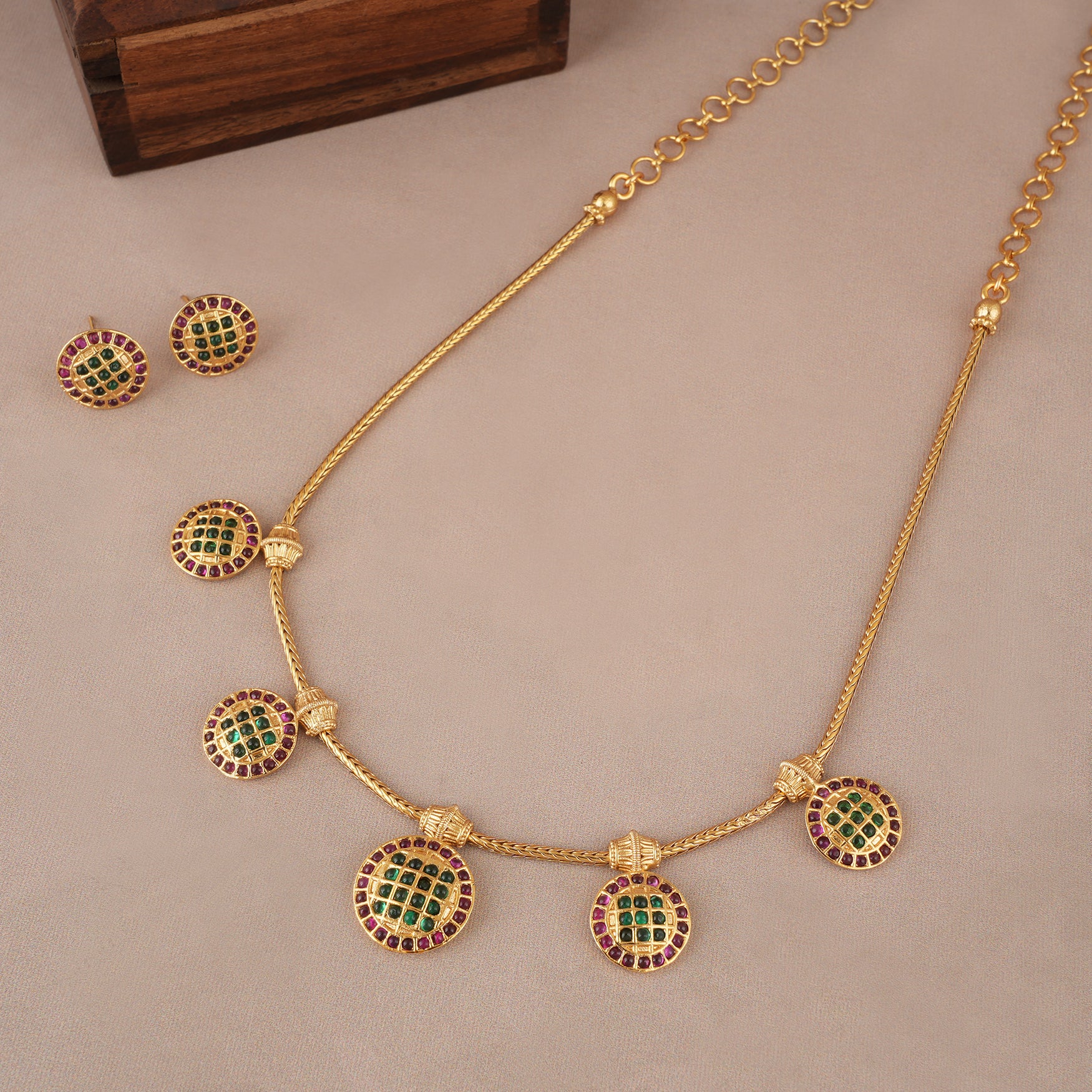 NOTE: These Delicate antiue gold stone necklace set have been crafted by hand and may have slight irregularities or imperfections in color or embellishment. These irregularities are the result of human involvement in the process and add to the finished product's charm while ensuring you have a one-of-a-kind piece.