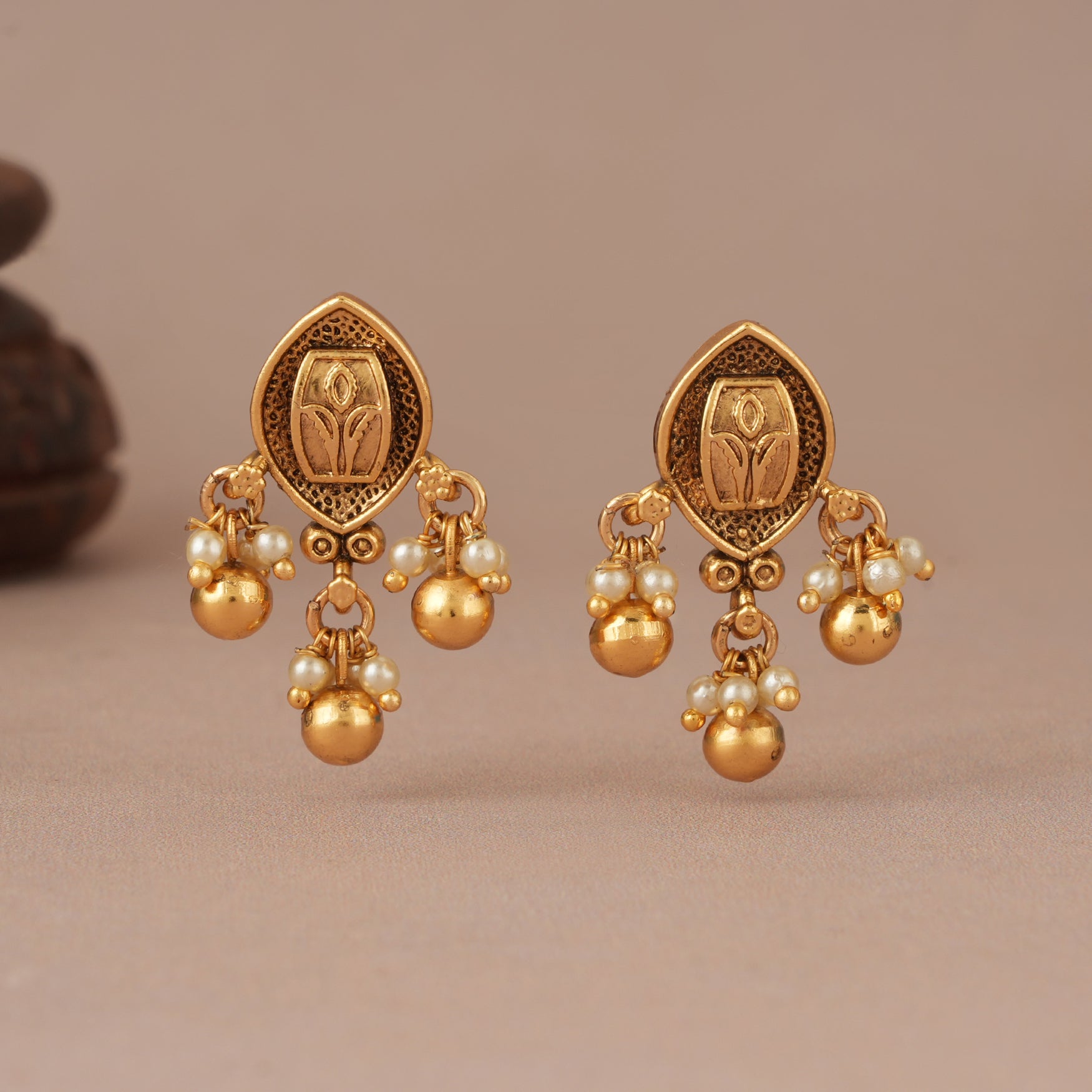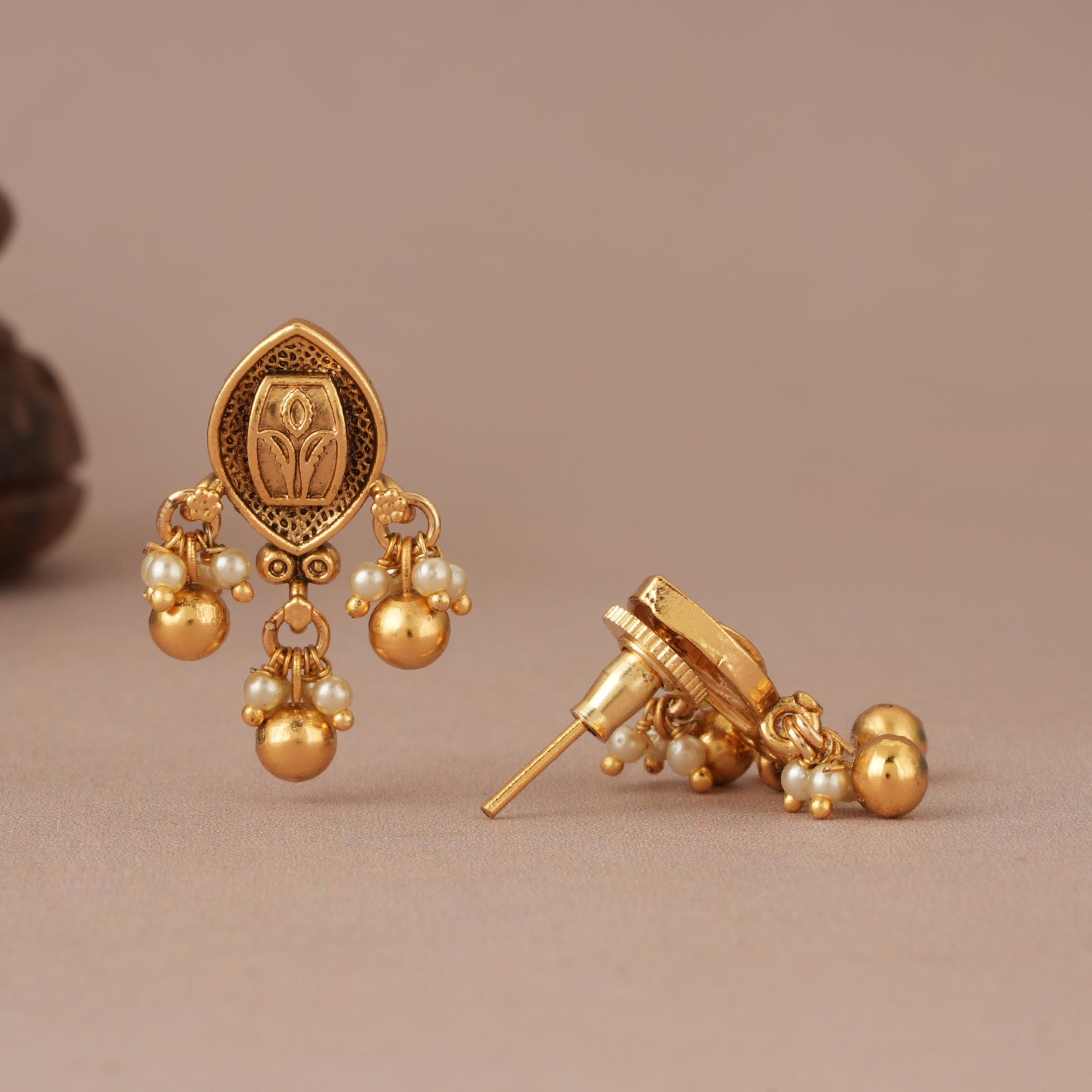 Elegant delicate traditional antique gold pearl drop earring  for women   show-stopping and come in traditional  Indian   design with gold plating and handwork.