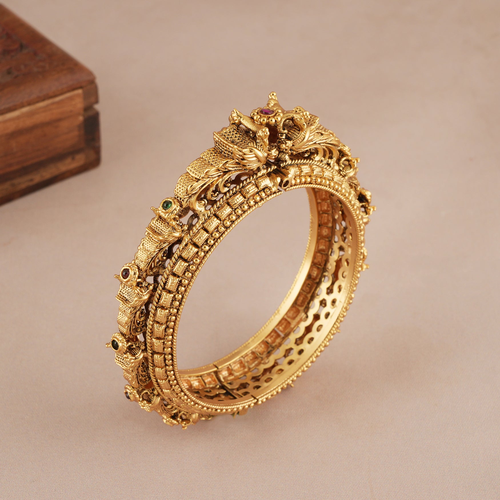 Stunning antique gold stone kada bangle