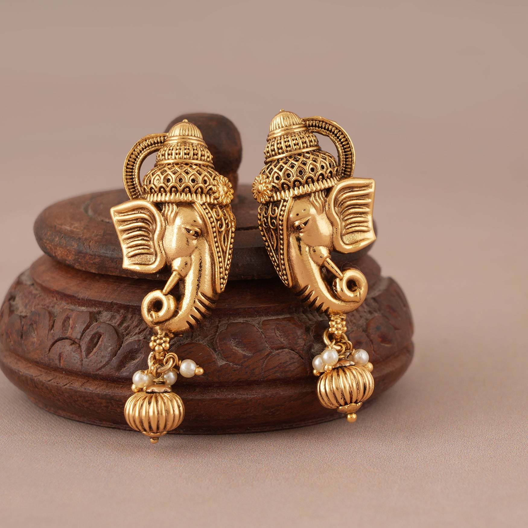 Antique Gold plated Ganesh earring I Temple Jewellery