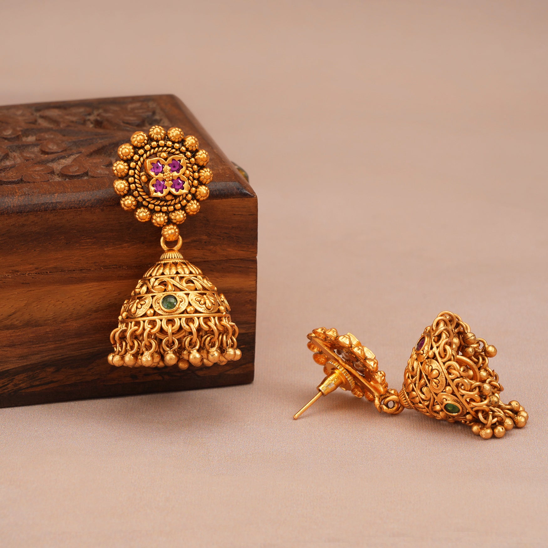 Dive into our collection where each jewel shines with the lasting beauty of gold, crafted from 100% pure brass and a high-quality gold finish that stands the test of time. Embrace designs that mix traditional charm with a modern look.