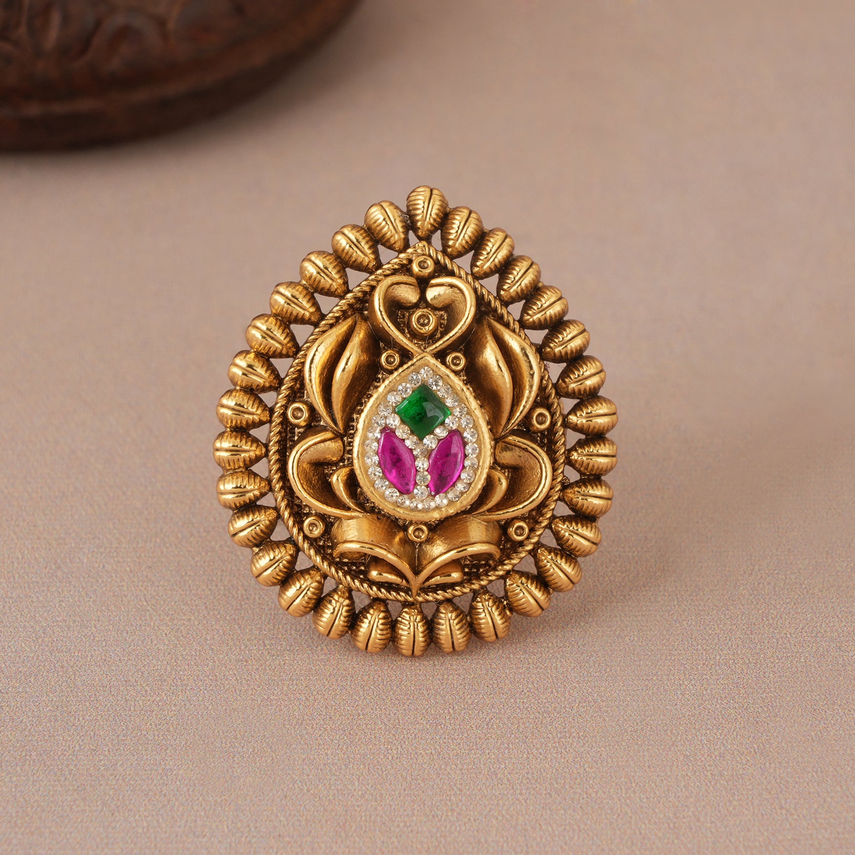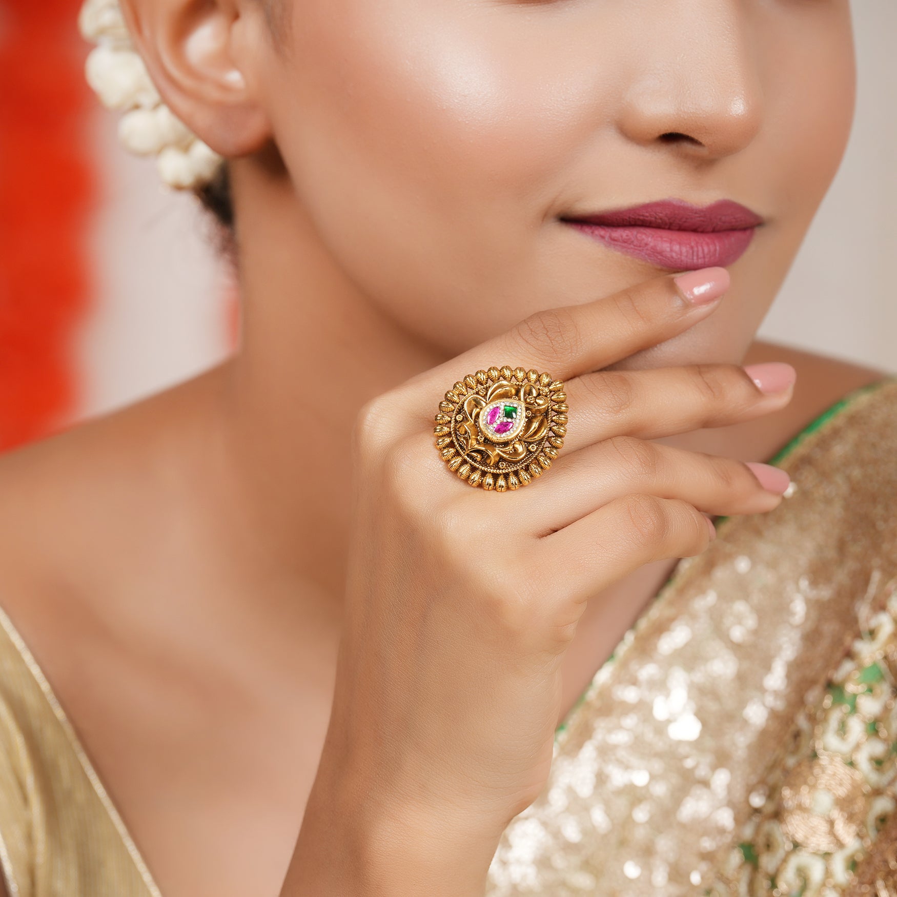 Gorgeous antique gold multicolor finger ring  is a timeless piece that will provide you with years of beautiful wear. The metal-brass alloy with gold plating is made to last. Gorgeous antique gold multicolor finger ring Gorgeous antique gold multicolor finger ring  show-stopping and comes in traditional Indian design with gold plating and handwork.Gorgeous antique gold multicolor finger ring  get free shipping even on Cash on delivery
