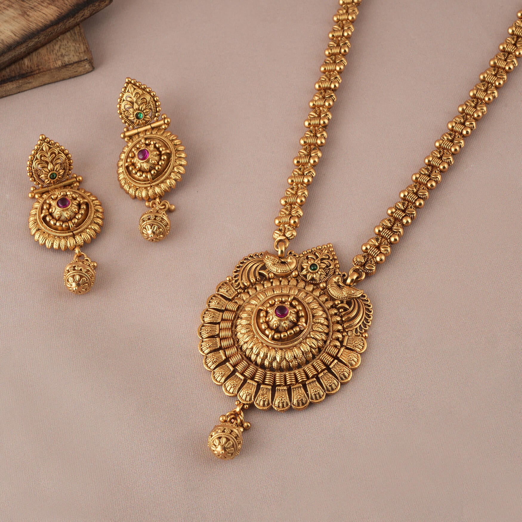 NOTE: Long amazing antique gold plated necklace set for women for women is has been crafted by hand and may have slight irregularities or imperfections in color or embellishment. These irregularities are the result of human involvement in the process and add to the finished product's charm while ensuring you have a one-of-a-kind piece.