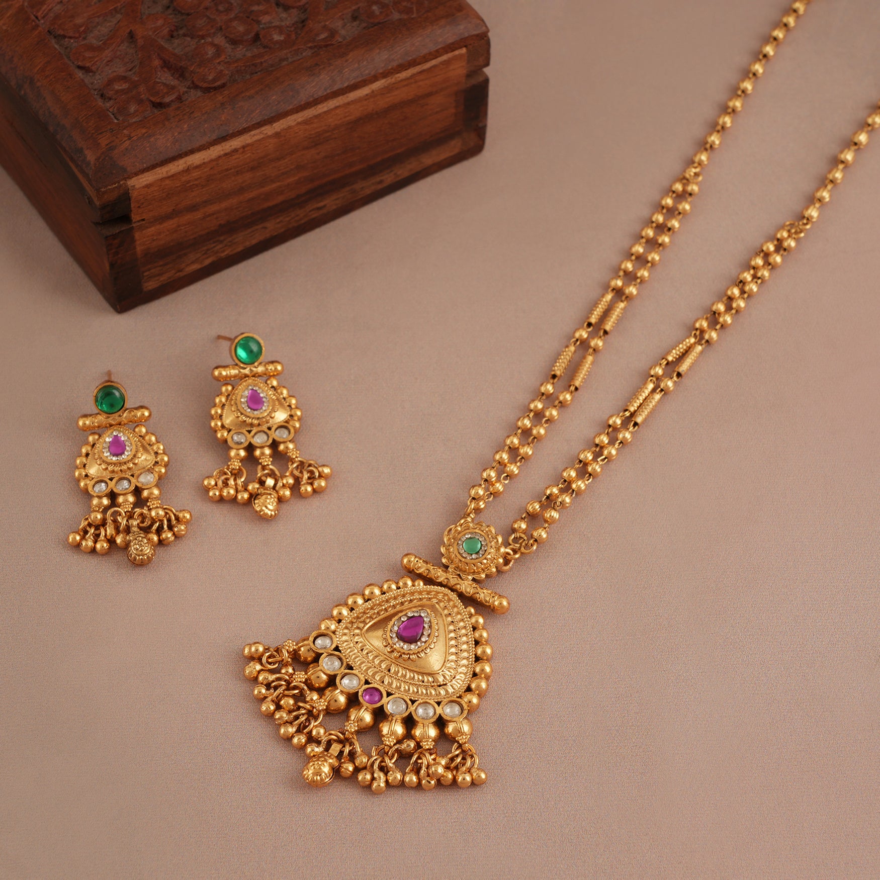 Dive into our collection where each jewel shines with the lasting beauty of gold, crafted from 100% pure brass and a high-quality gold finish that stands the test of time. Embrace designs that mix traditional charm with a modern look.