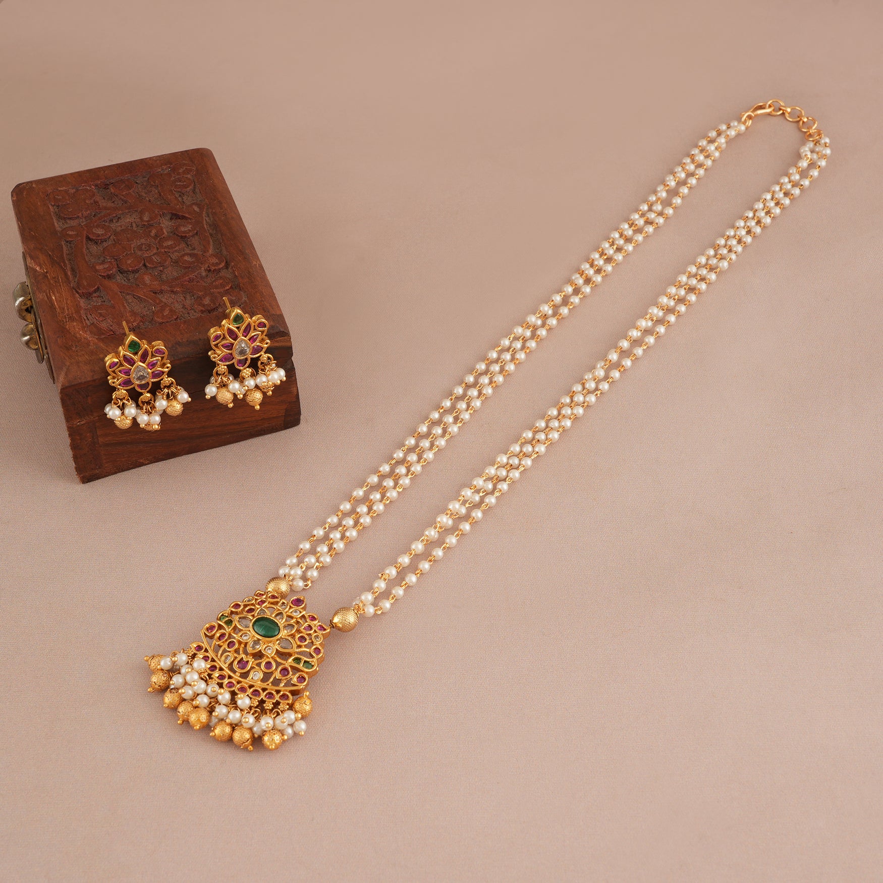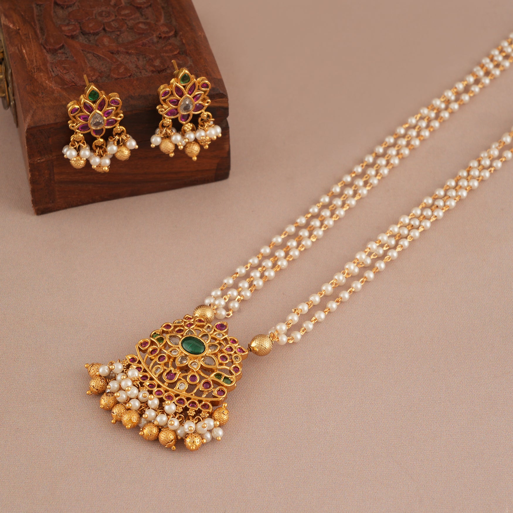Buy this Long antique gold pearl line stone pendant set is and get free shipping even on Cash on Delivery