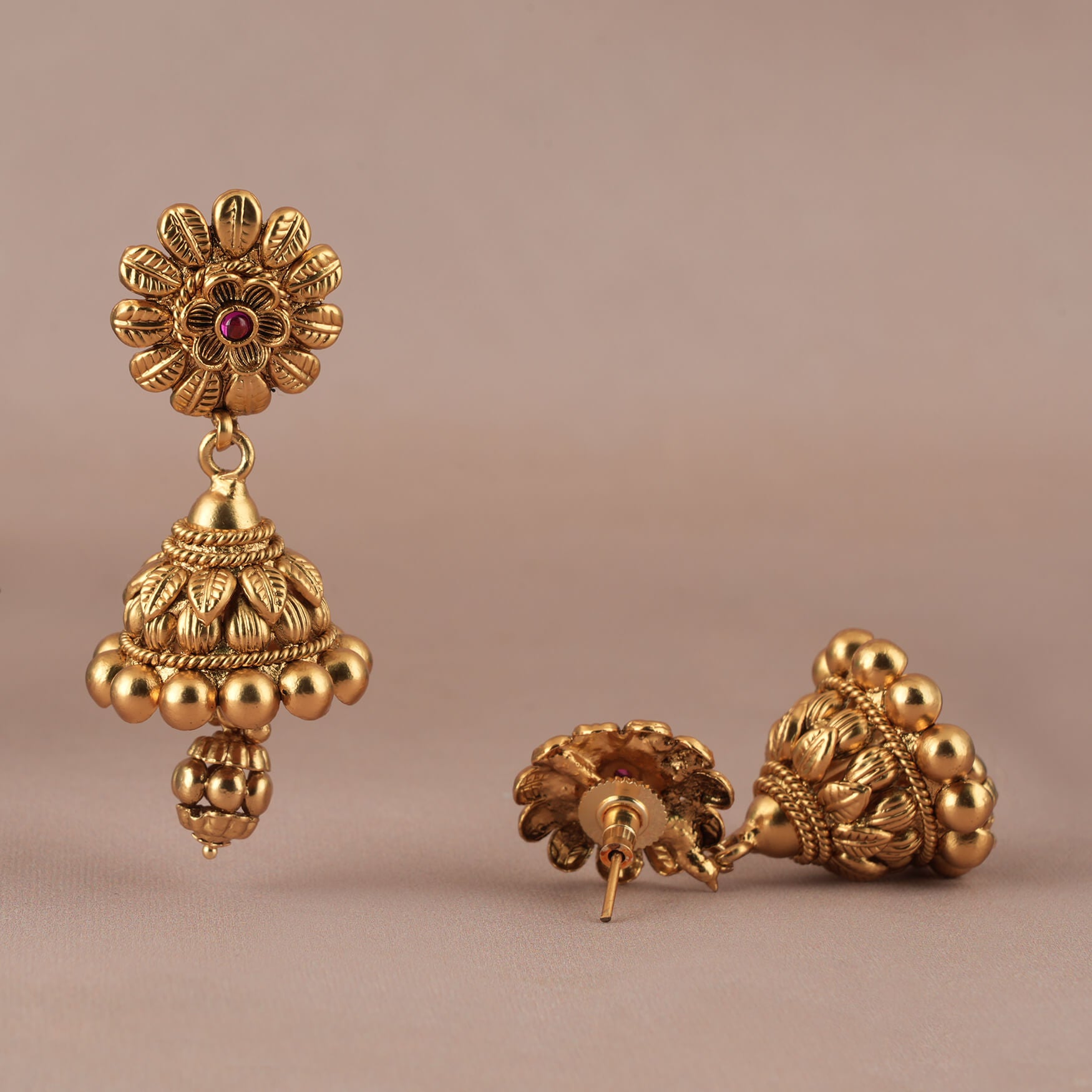 NOTE: These  Long antique gold plated jhumka earring for women have been crafted by hand and may have slight irregularities or imperfections in color or embellishment. These irregularities are the result of human involvement in the process and add to the finished product's charm while ensuring you have a one-of-a-kind piece.