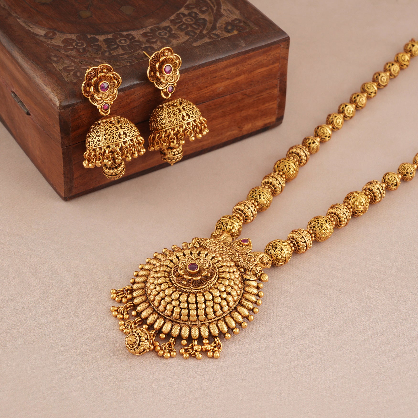 Buy this Long antique gold traditional necklace set is and get free shipping even on Cash on Delivery