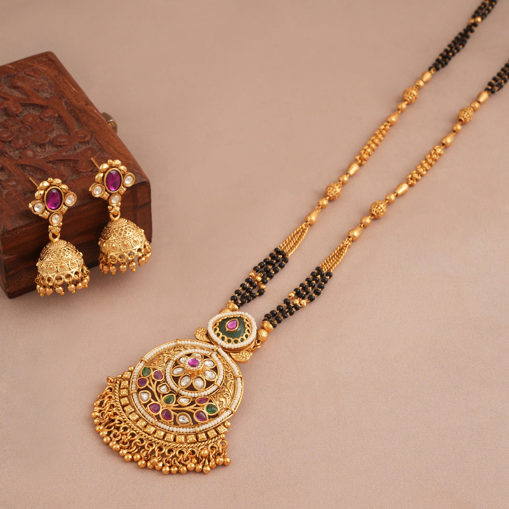 Buy this Long stone antique gold beautiful mangalsutra set  is and get free shipping even on Cash on Delivery
