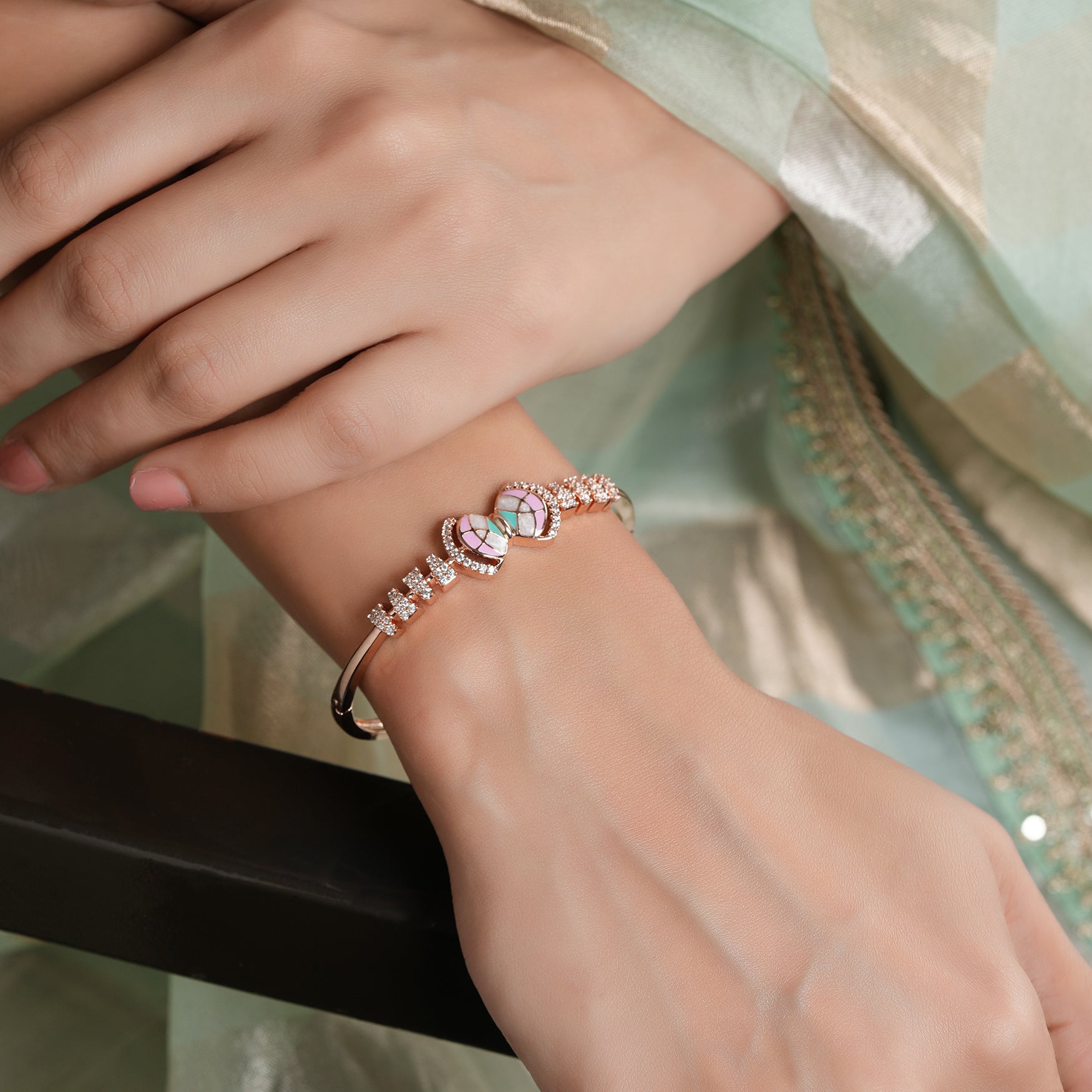 NOTE: This Marveleous meenakari gold plated cz diamond bracelet has been crafted by hand and may have slight irregularities or imperfections in color or embellishment. These irregularities are the result of the human involvement in the process and add to the finished product's charm while ensuring you have a one-of-a-kind piece.