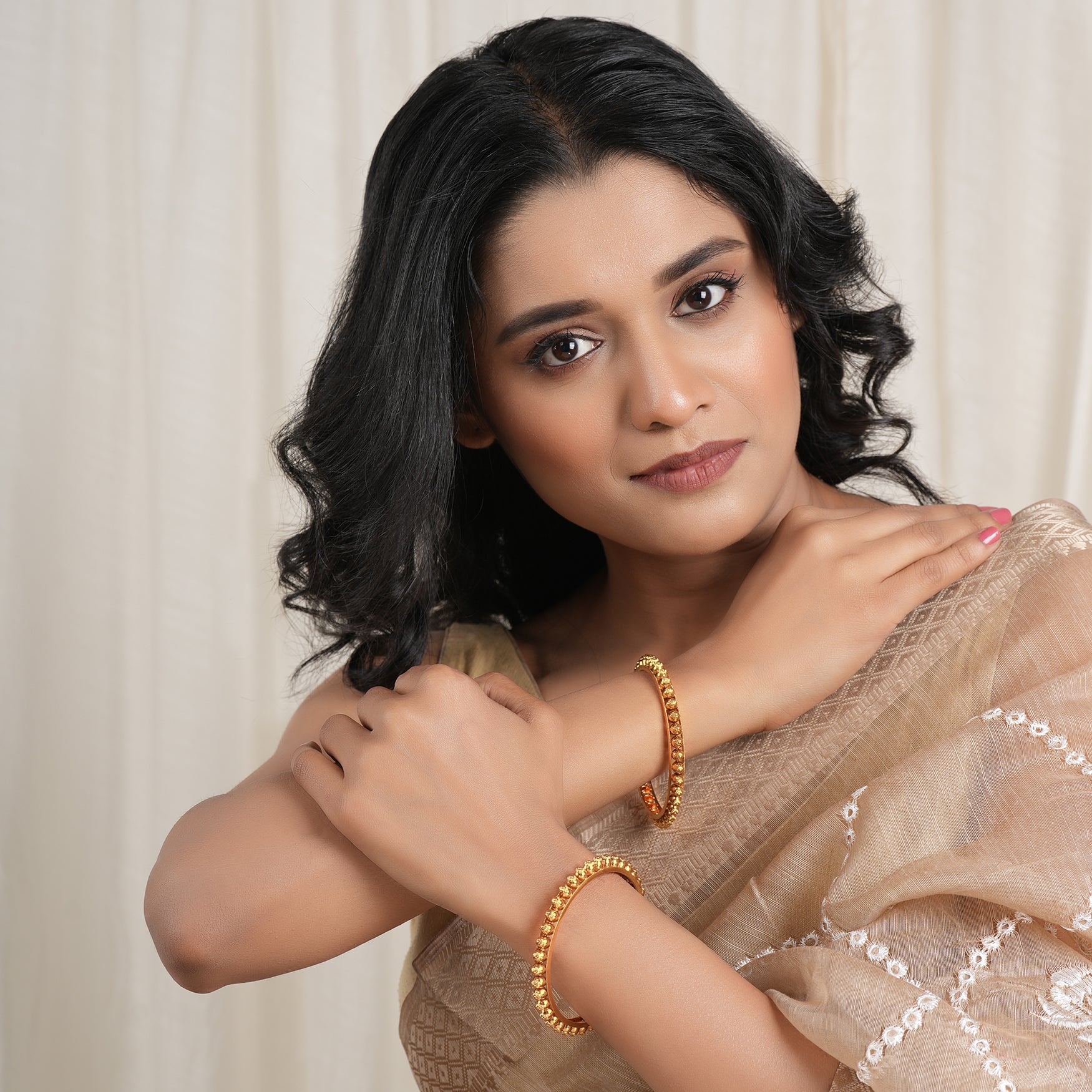 NOTE: This Plain antique gold ball bangle set has been crafted by hand and may have slight irregularities or imperfections in color or embellishment. These irregularities are the result of human involvement in the process and add to the finished product's charm while ensuring you have a one-of-a-kind piece.