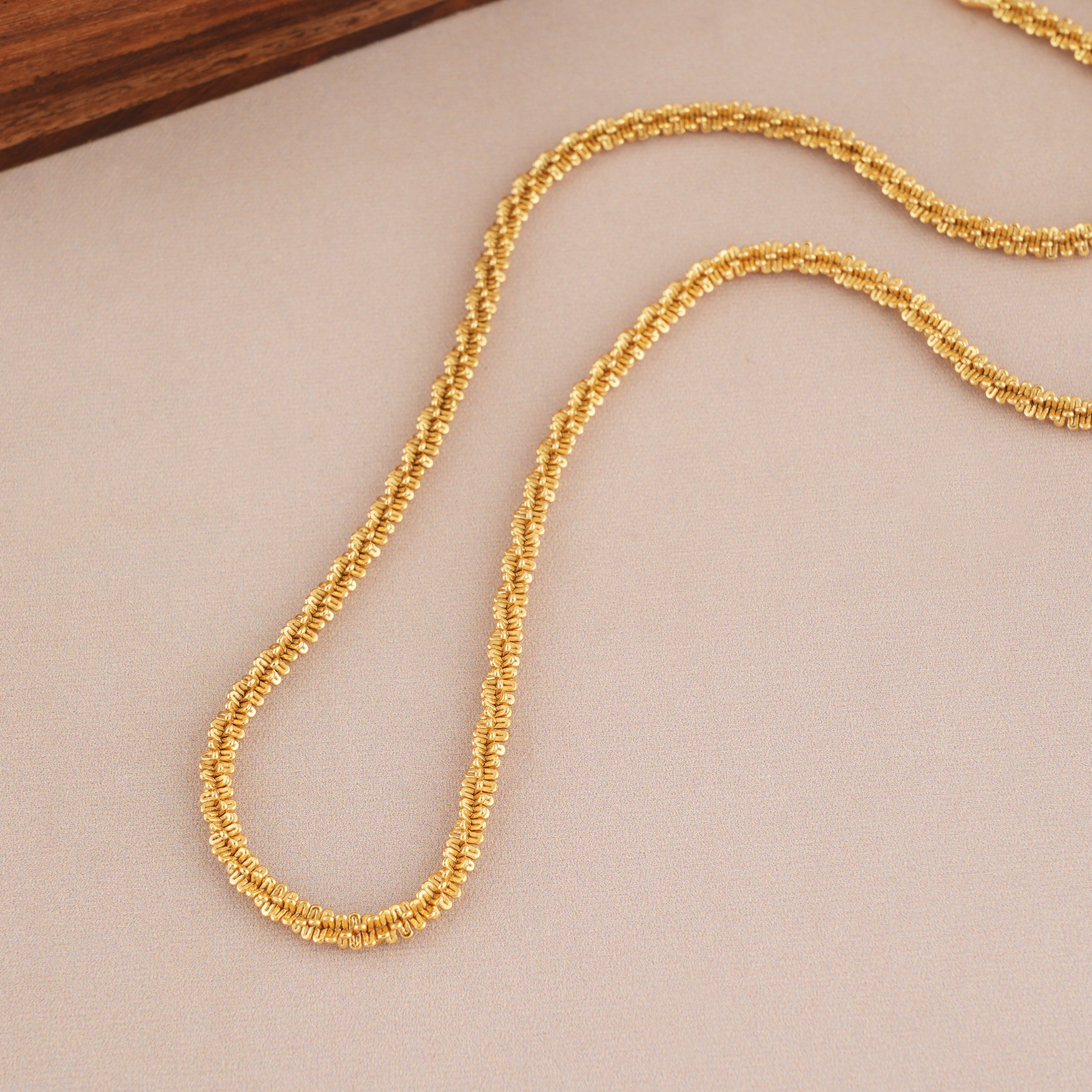 Plain antique gold intricate chain is made of brass alloy with gold plating. This gold chain length is 20 inches, and its lock is hook lock.  You can adjust the length of the chain to your desired length as it has a hook lock.  Buy Plain antique gold intricate chain and get free shipping even on Cash on Delivery.