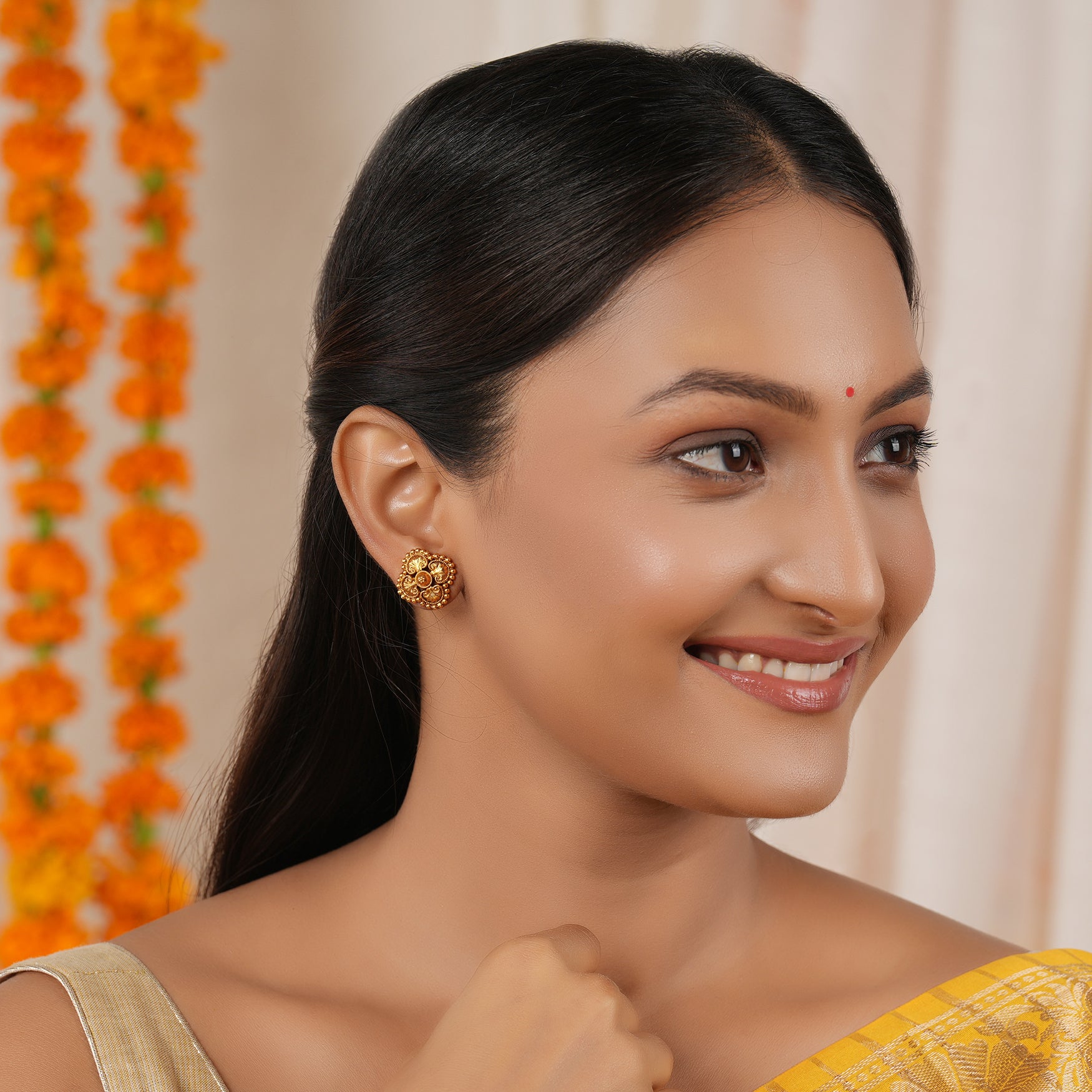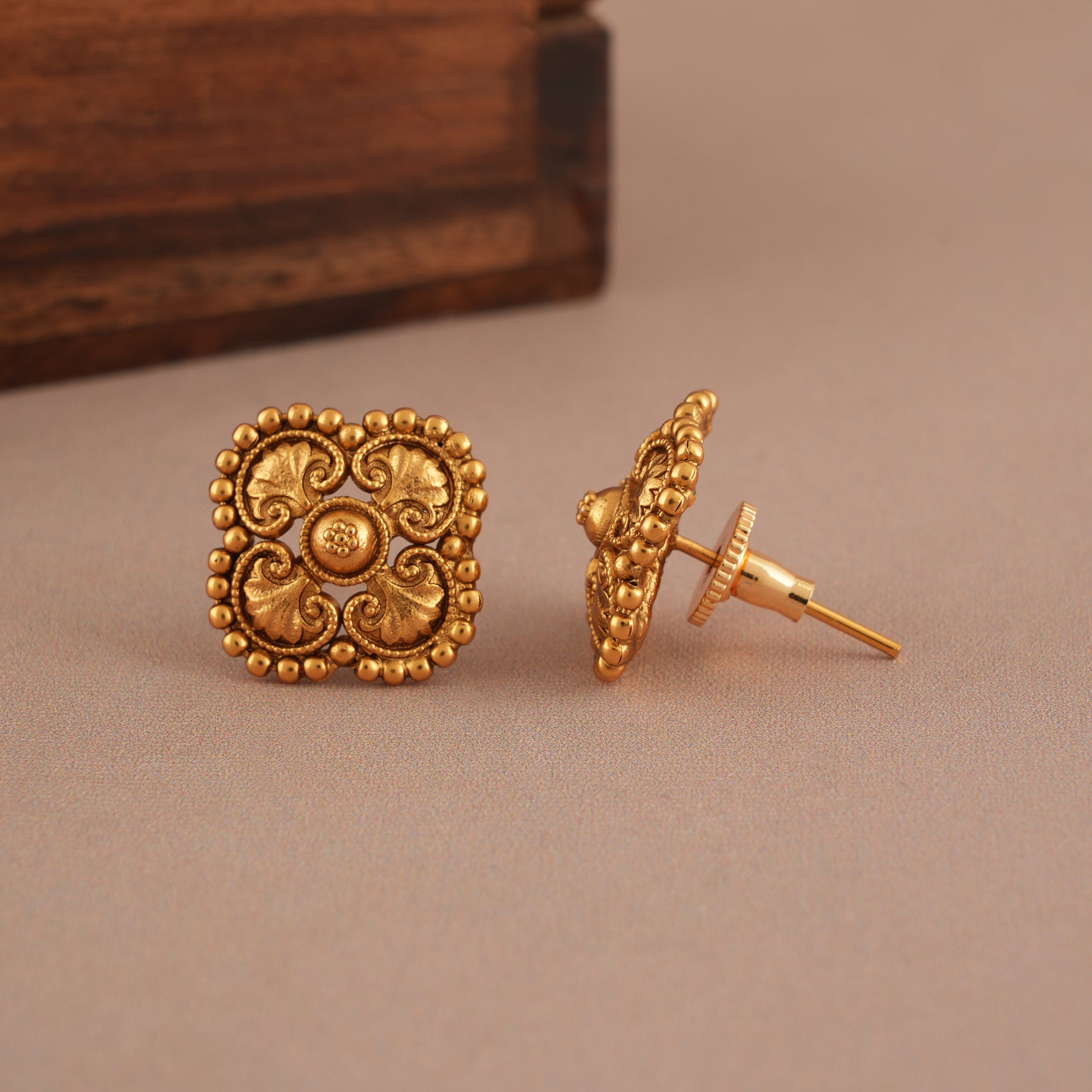 Plain antique gold stud earring show-stopping and come in traditional  Indian   design with gold plating and handwork.