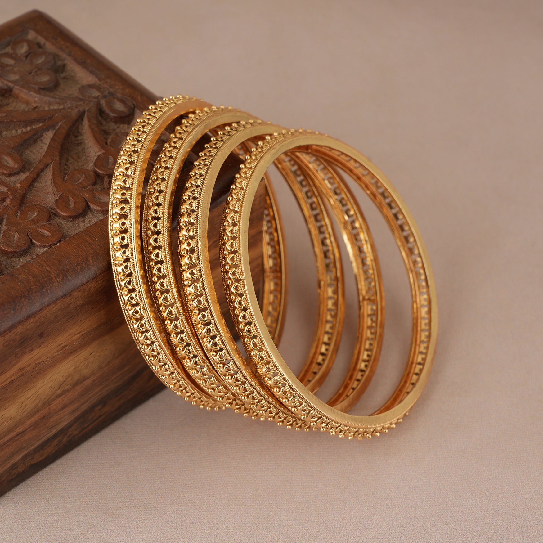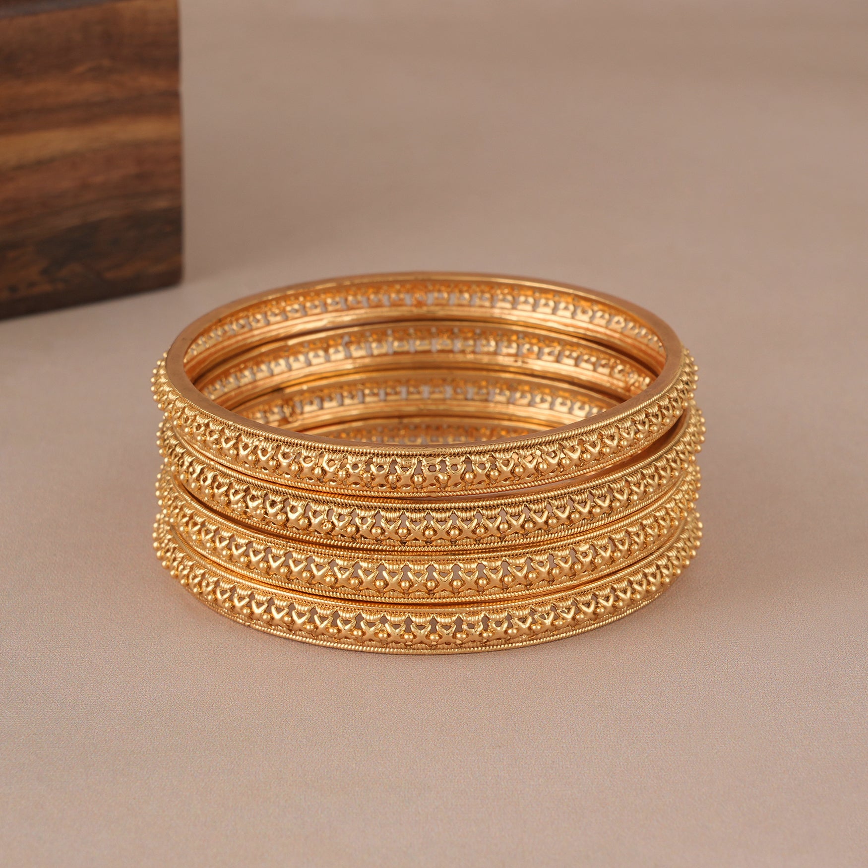 sleek gold plated bangle set (set of 4) show-stopping and comes in traditional Indian design with gold plating and handwork. Sleek gold plated bangle set (set of 4) online and get free shipping even on Cash on Delivery