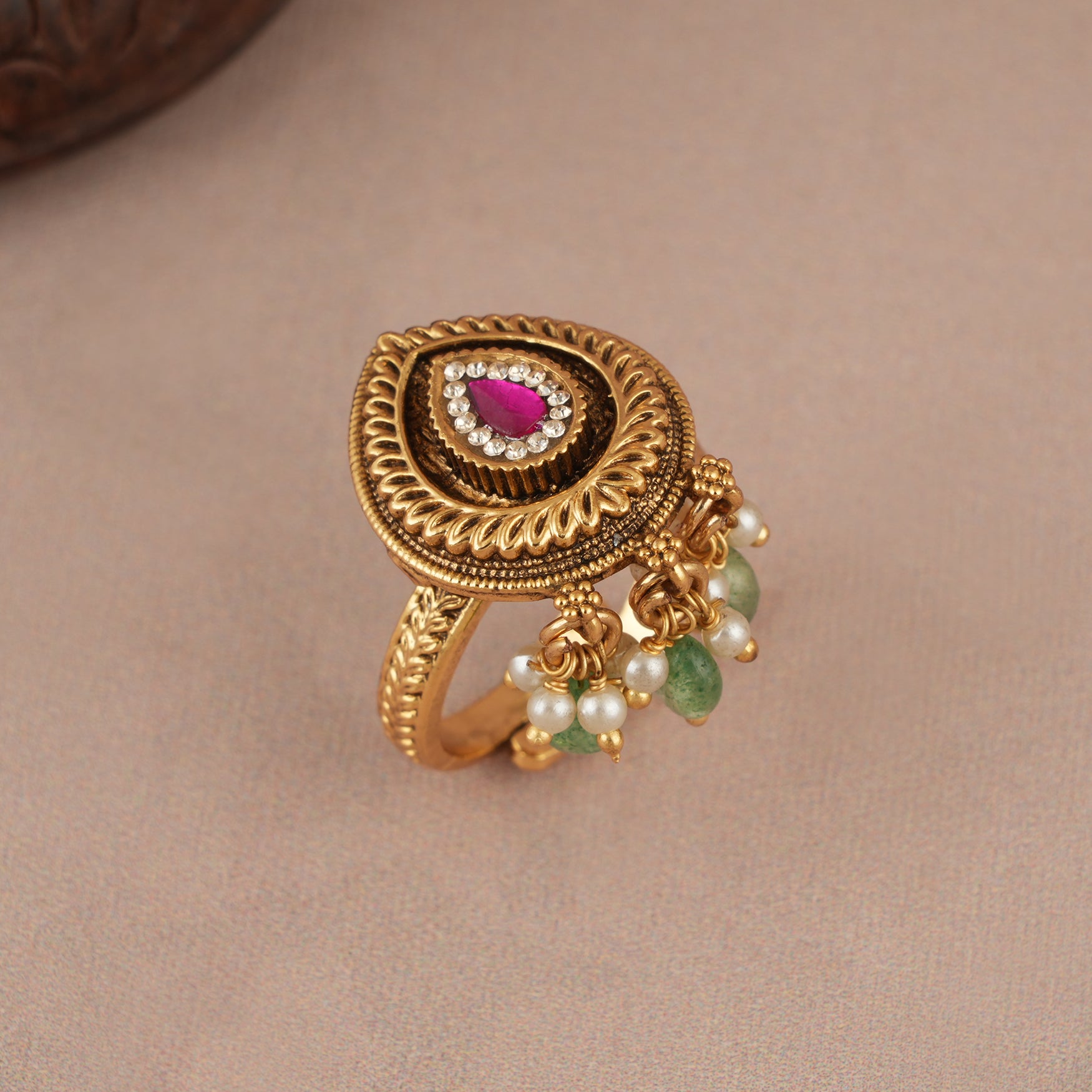 Stone antique gold adjustable finger ring is show-stopping and comes in traditional Indian design with gold plating and handwork. Stone antique gold adjustable finger ring free shipping even on Cash on Delivery