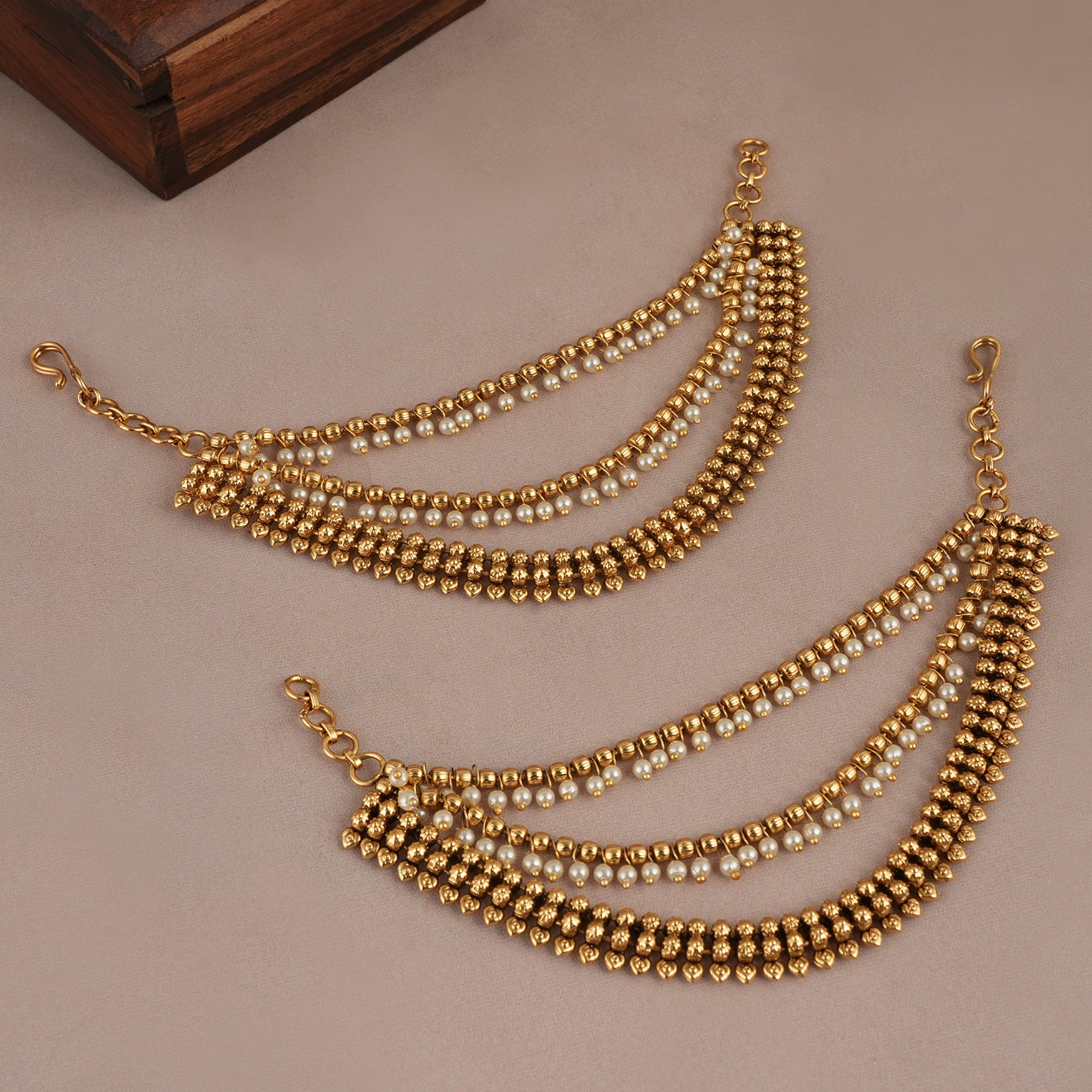 Buy Stunning antique gold 3 layer pearl ear chain for earring and get free shipping even on Cash on Delivery.