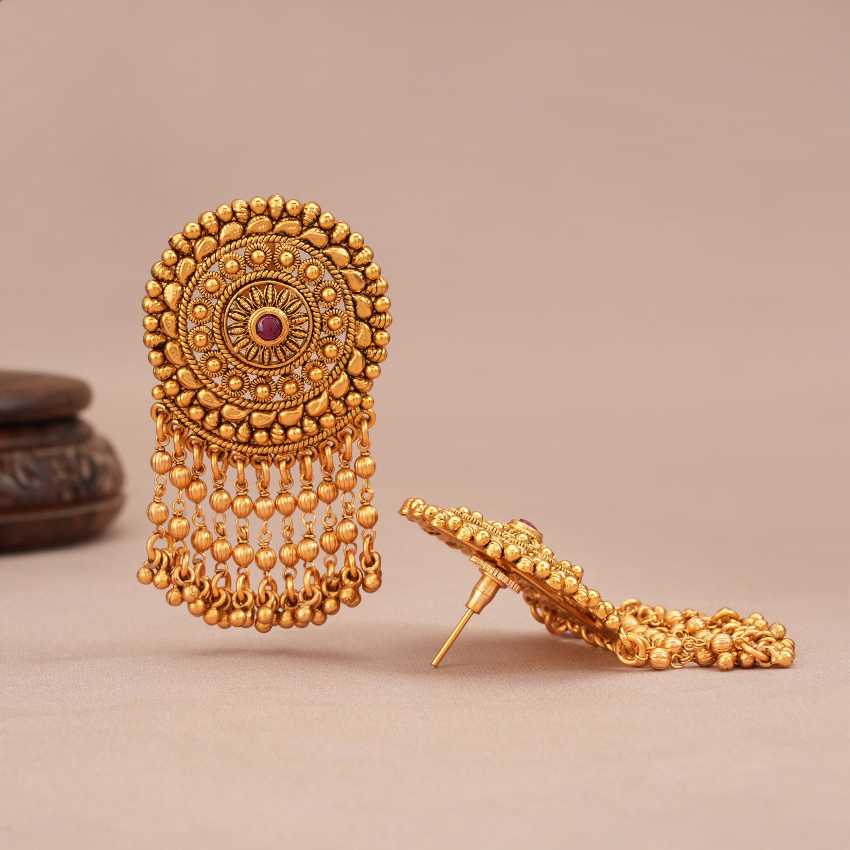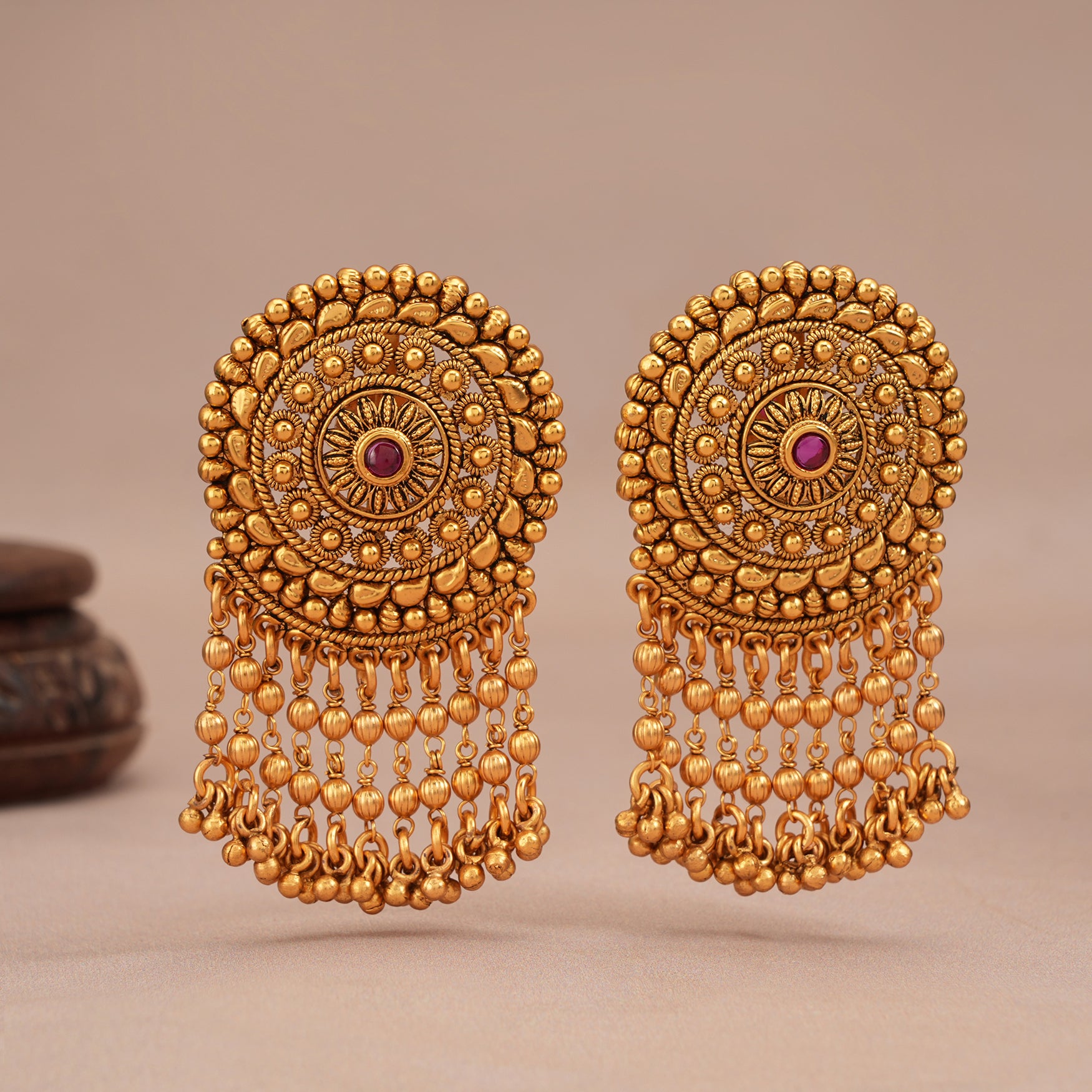 Stunning antique gold balls dangler earring are show-stopping and come in contemporary Indian design with gold plating and handwork. Stunning antique gold balls dangler earring and get free shipping even on Cash on Delivery.