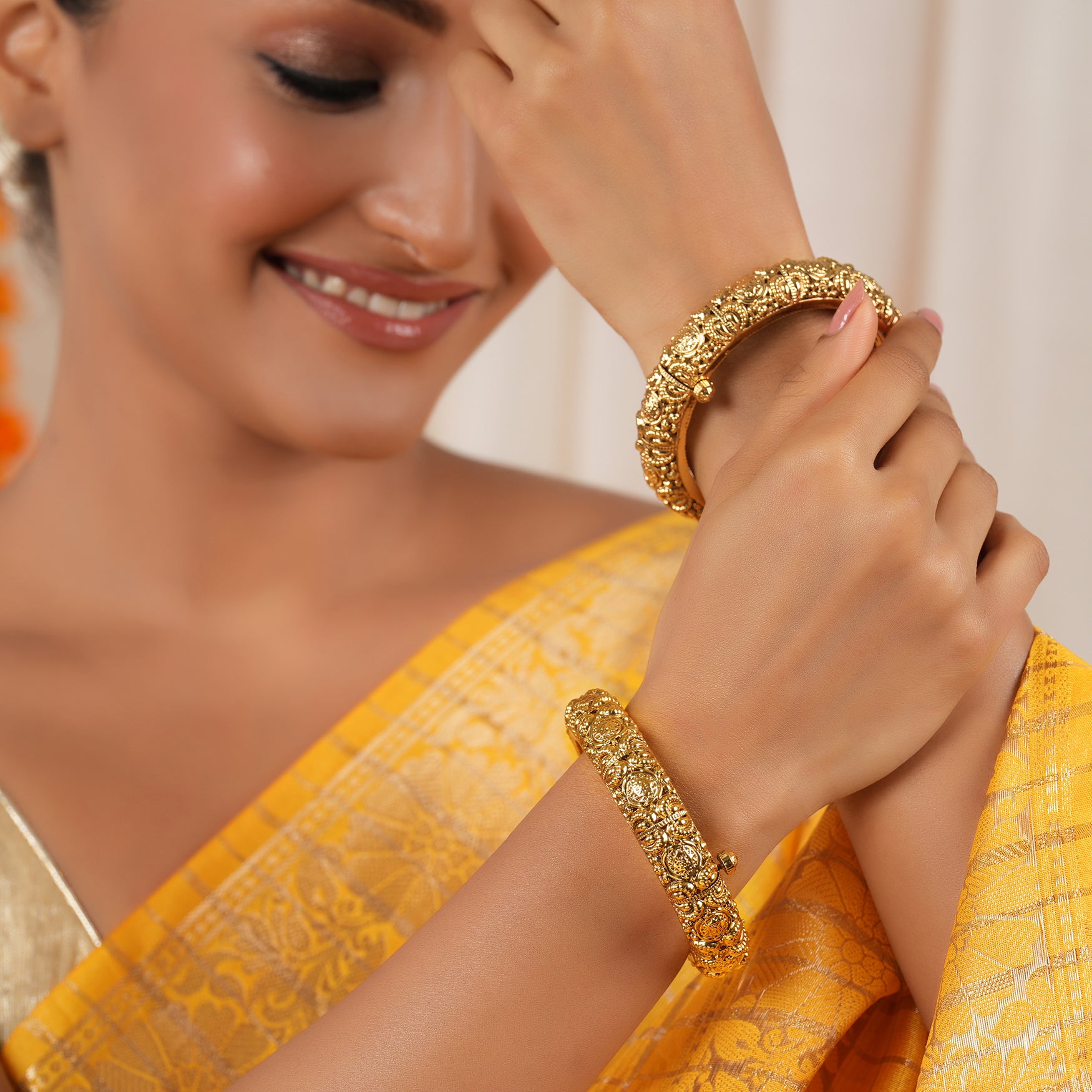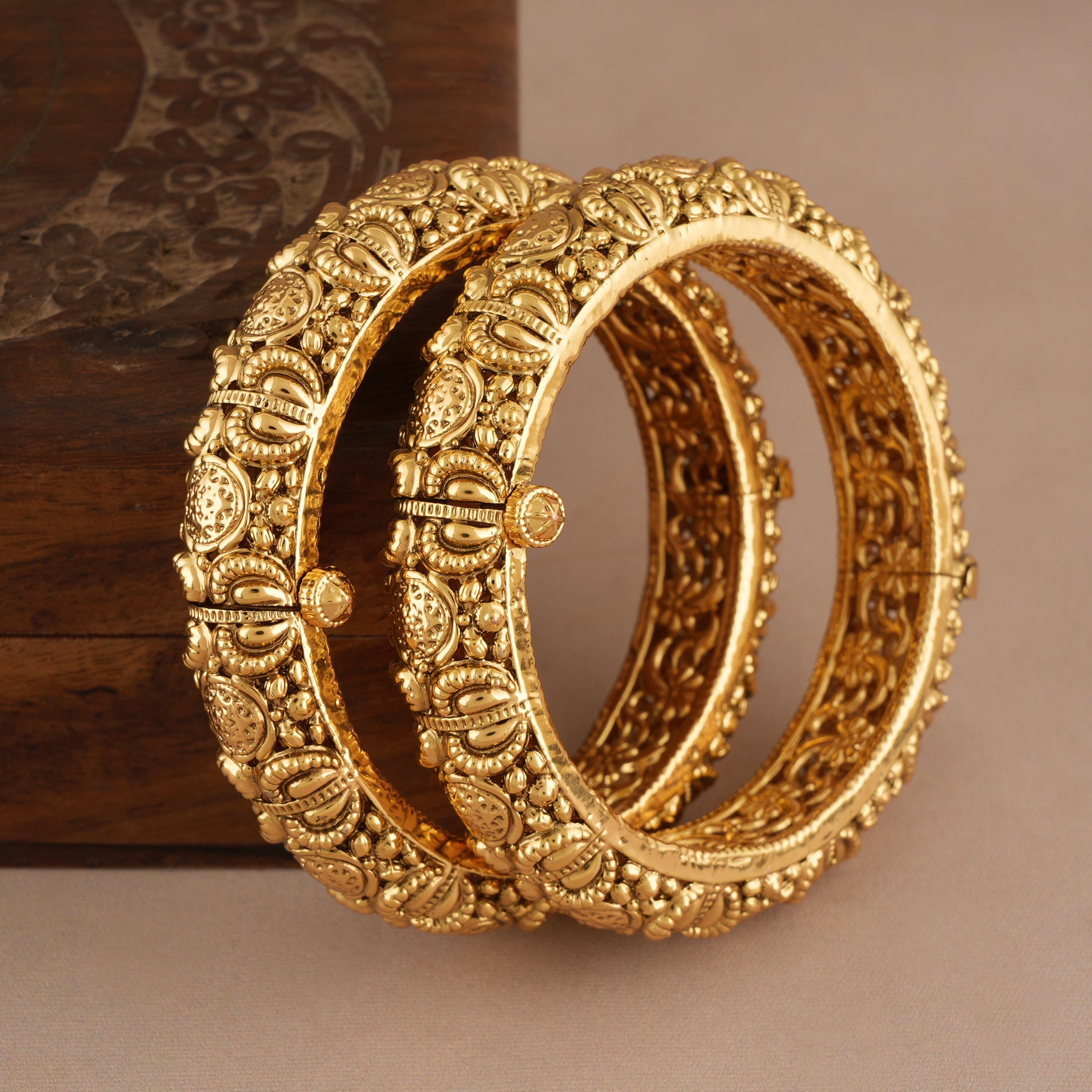 NOTE: This Stunning antique gold high polish bangle set for women has been crafted by hand and may have slight irregularities or imperfections in color or embellishment.