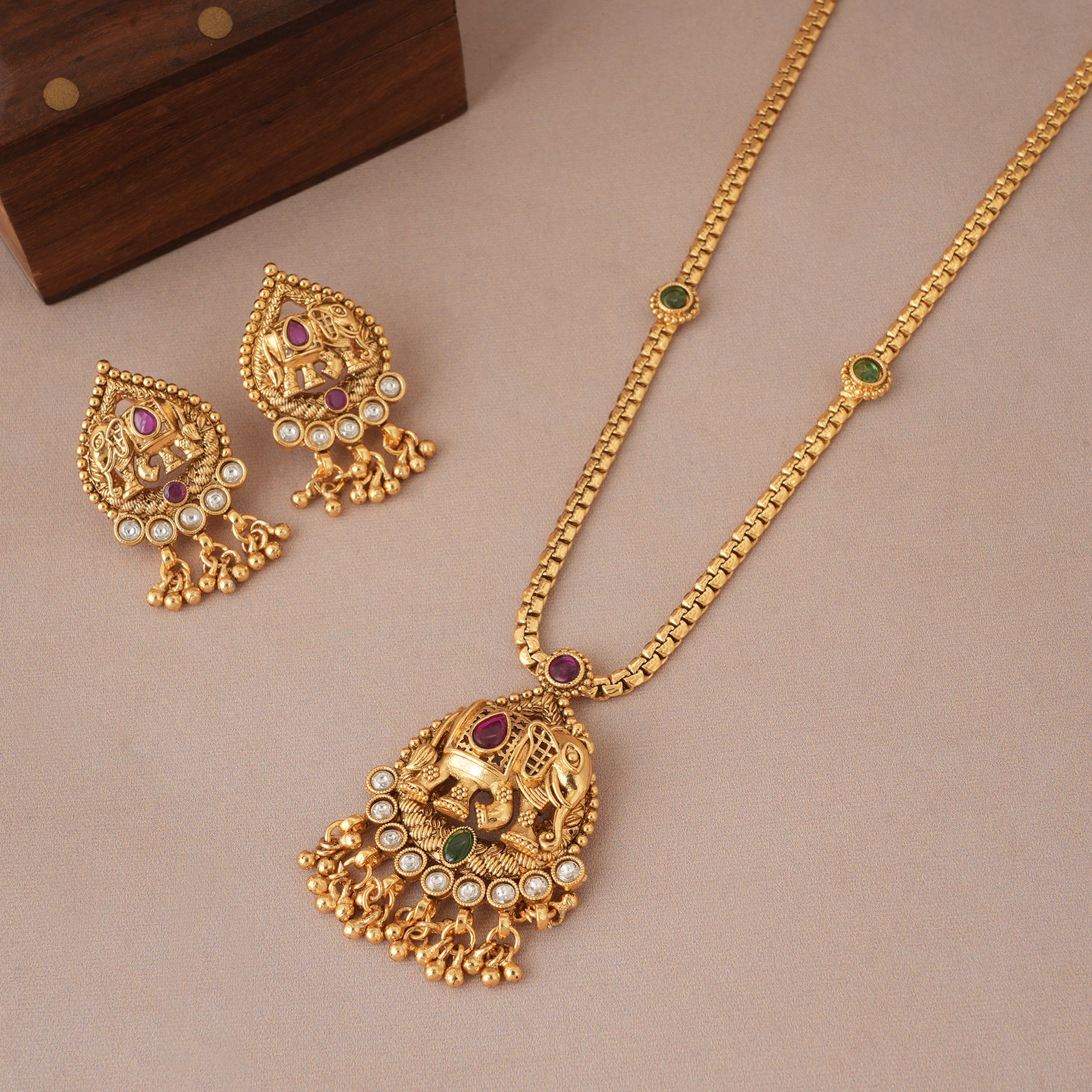 Stunning antique gold kundan stone pendant set   is a show-stopping, traditional Indian necklace set with gold plating and handwork. Buy Stunning antique gold kundan stone pendant set  and get free shipping even on Cash on Delivery.