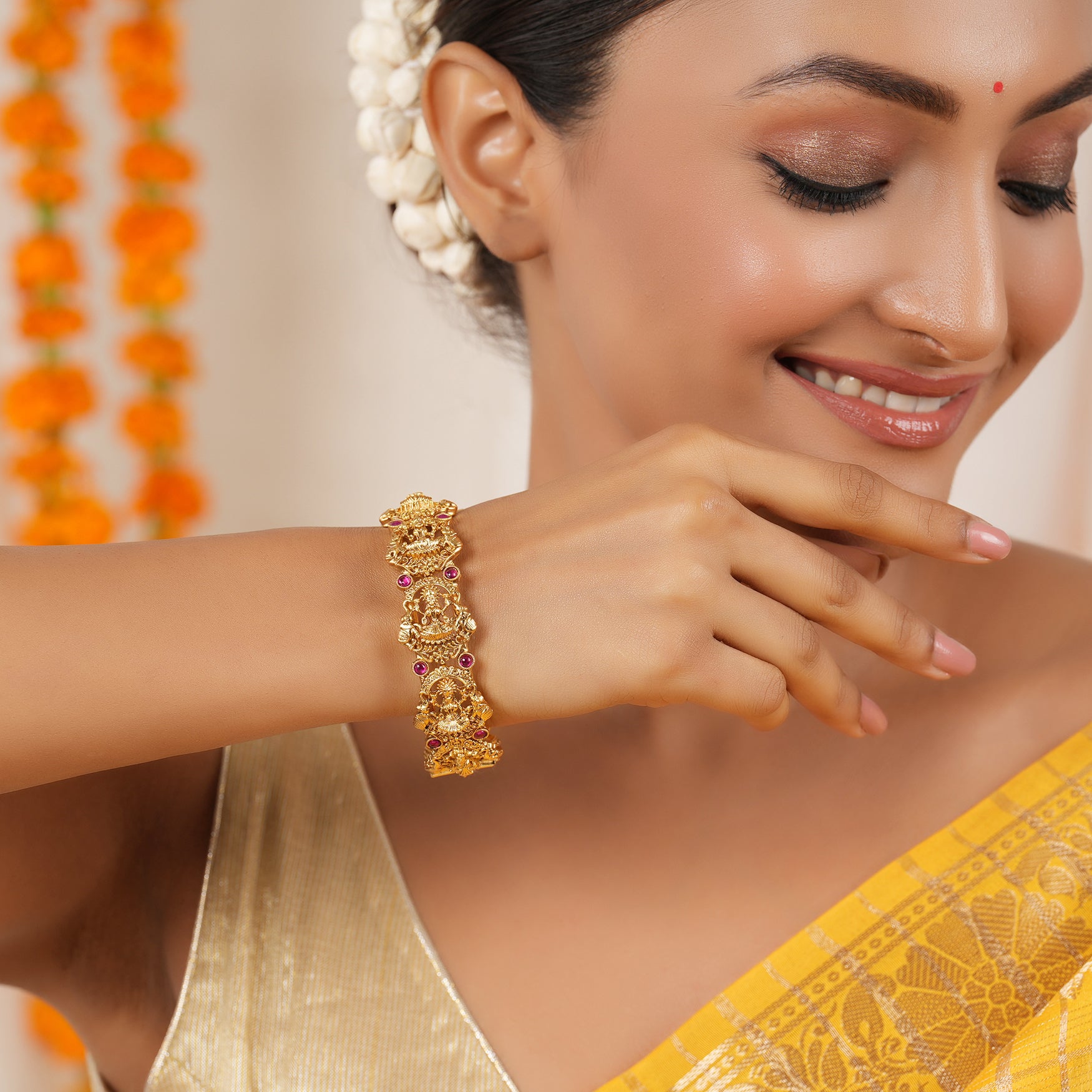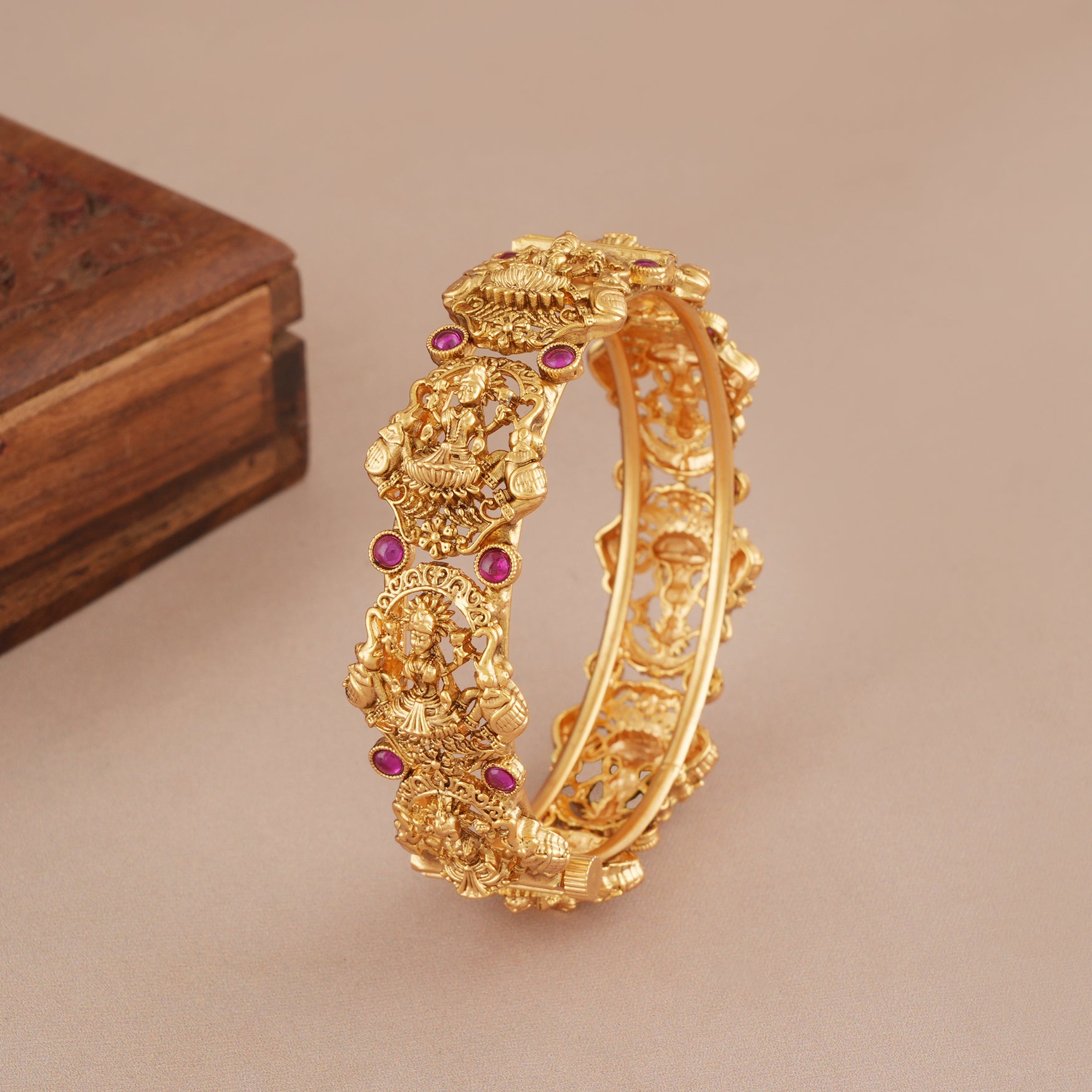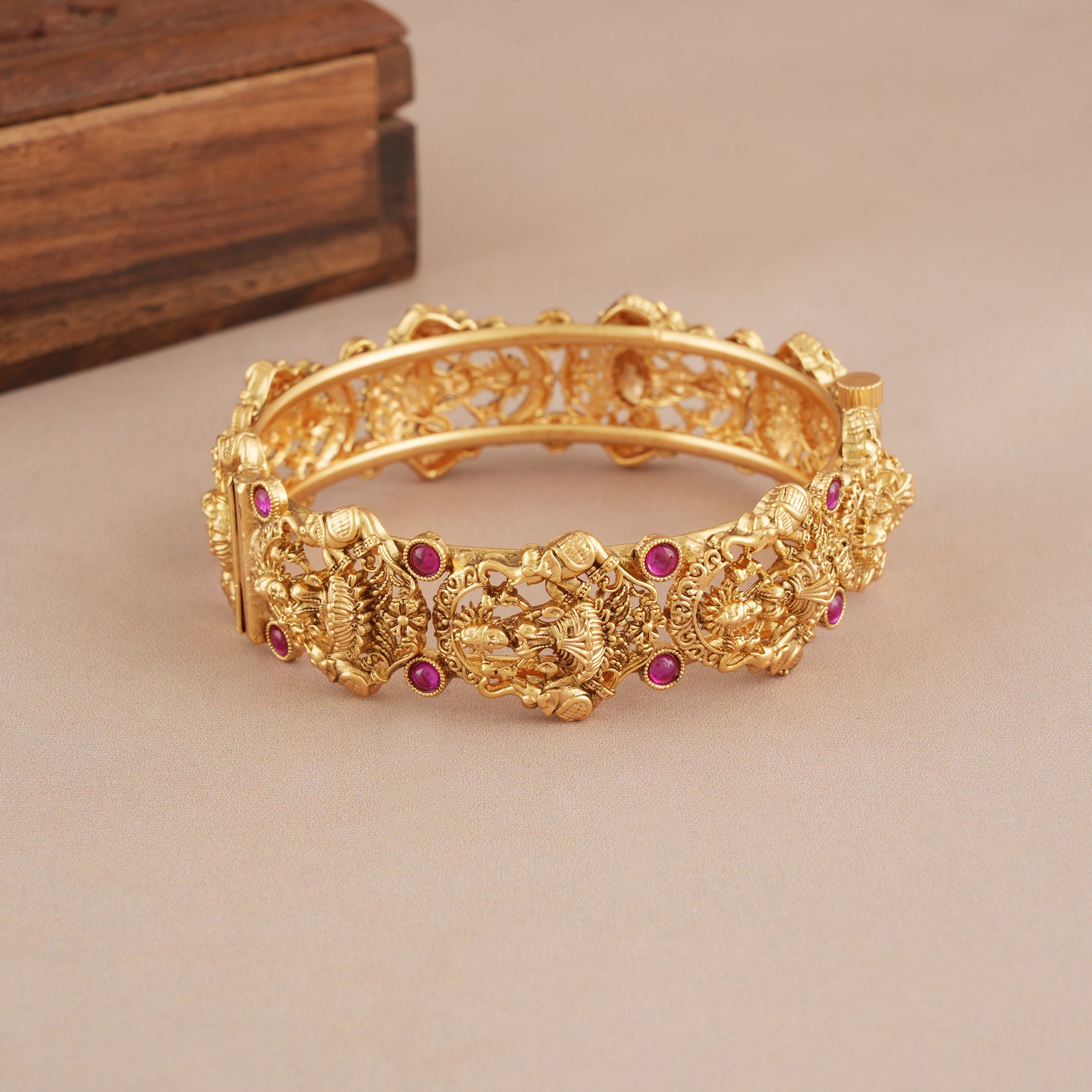 Stunning antique gold ma lakshmi kada ruby bangle