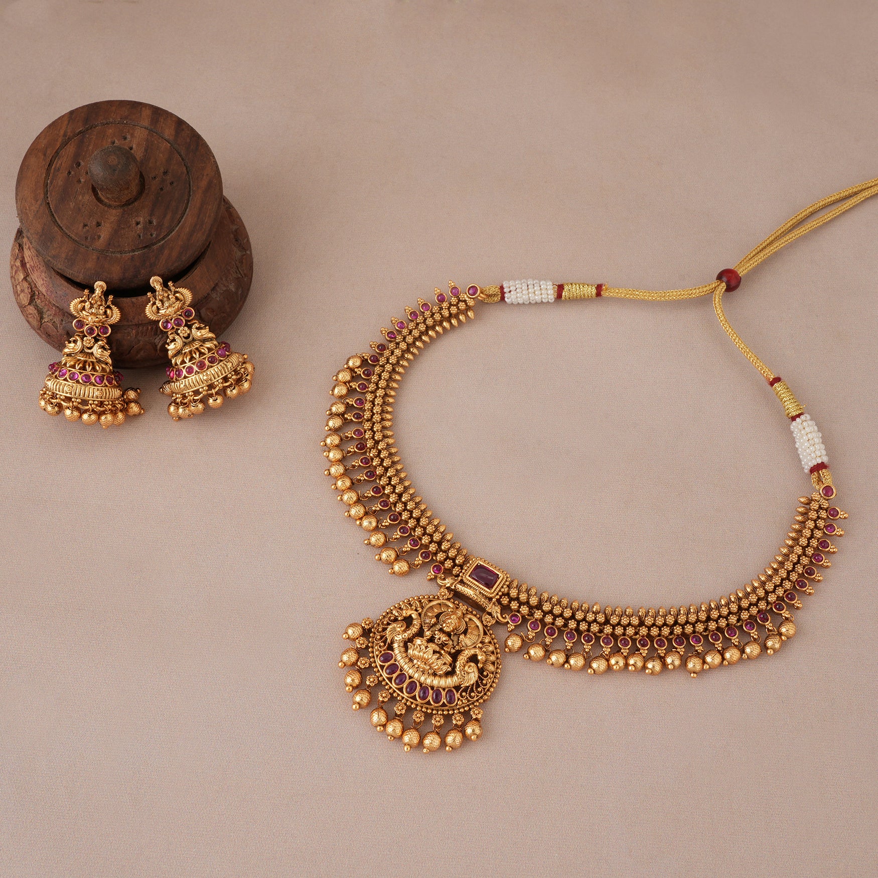 Stunning antique gold ruby traditional maa lakshmi necklace set I Temple Jewellery