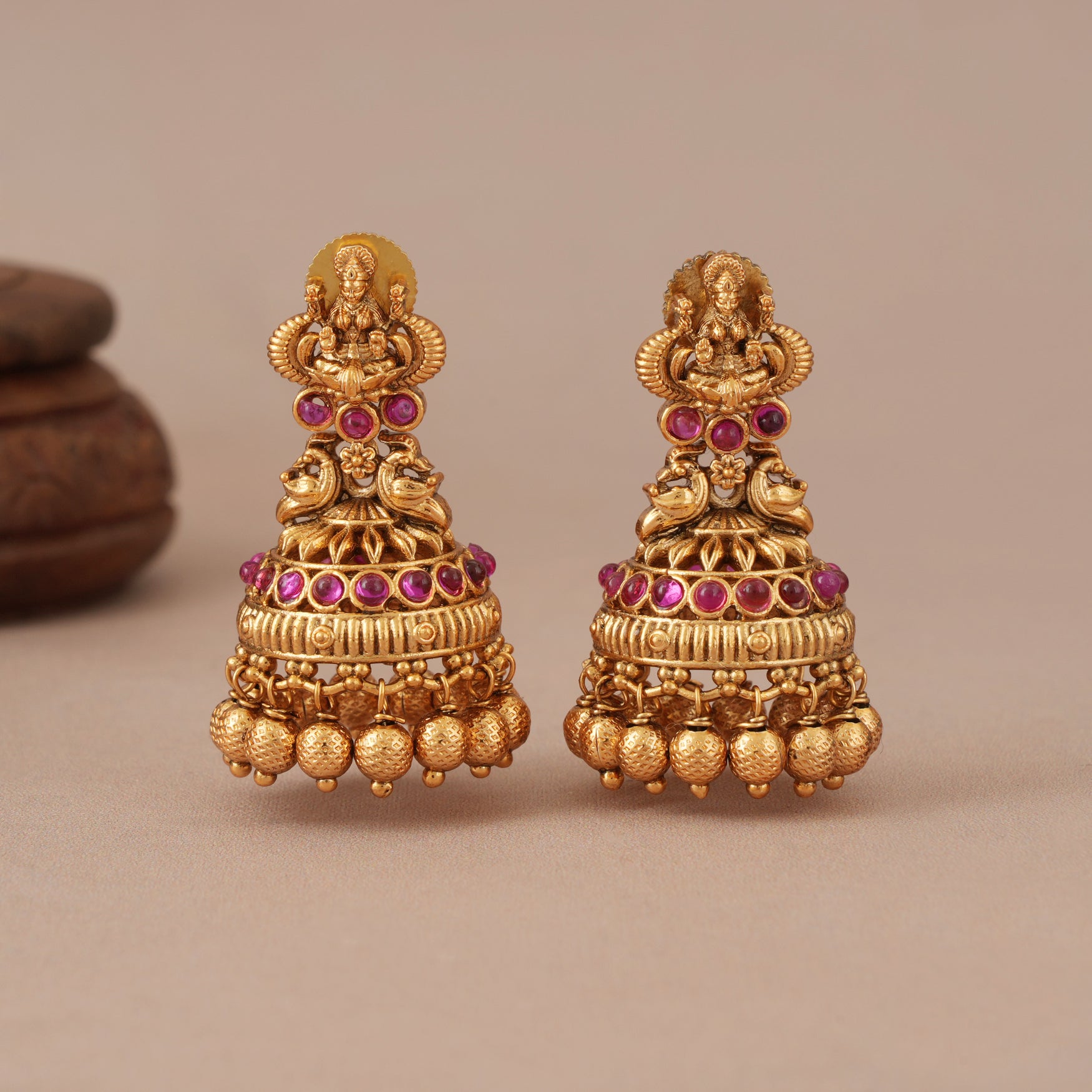 Stunning antique gold ruby traditional maa lakshmi necklace set I Temple Jewellery are show-stopping and come in traditional Indian design with gold plating and handwork.