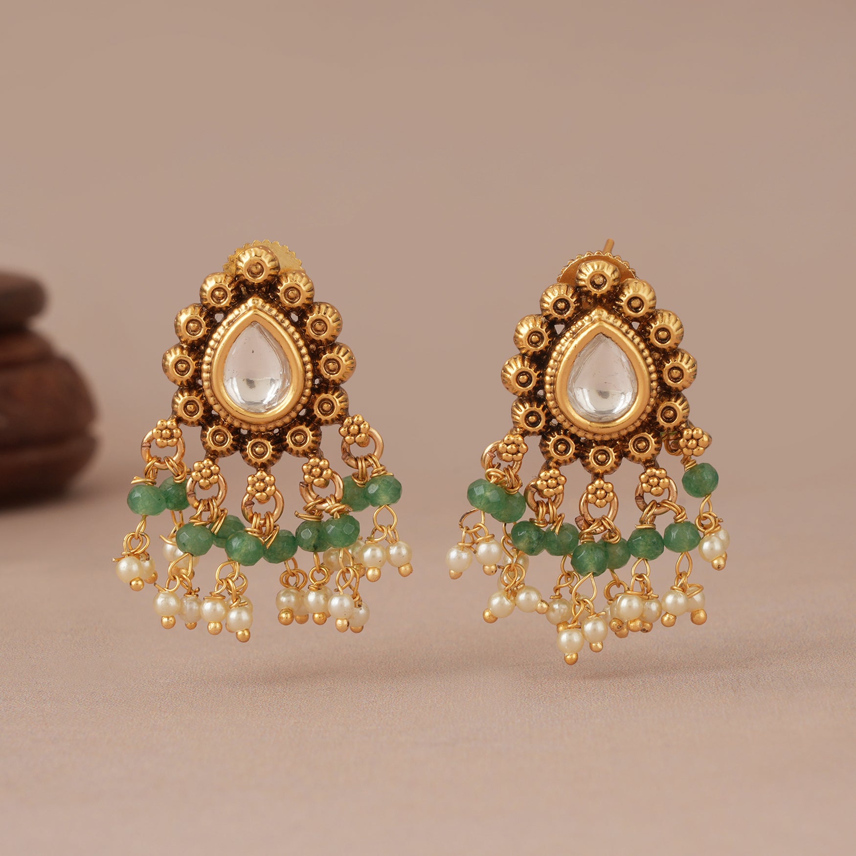 Stunning antique gold stone drop kundan earring is show-stopping and come in contemporary Indian design with gold plating and handwork. Stunning antique gold stone drop kundan earring and get free shipping even on Cash on Delivery.