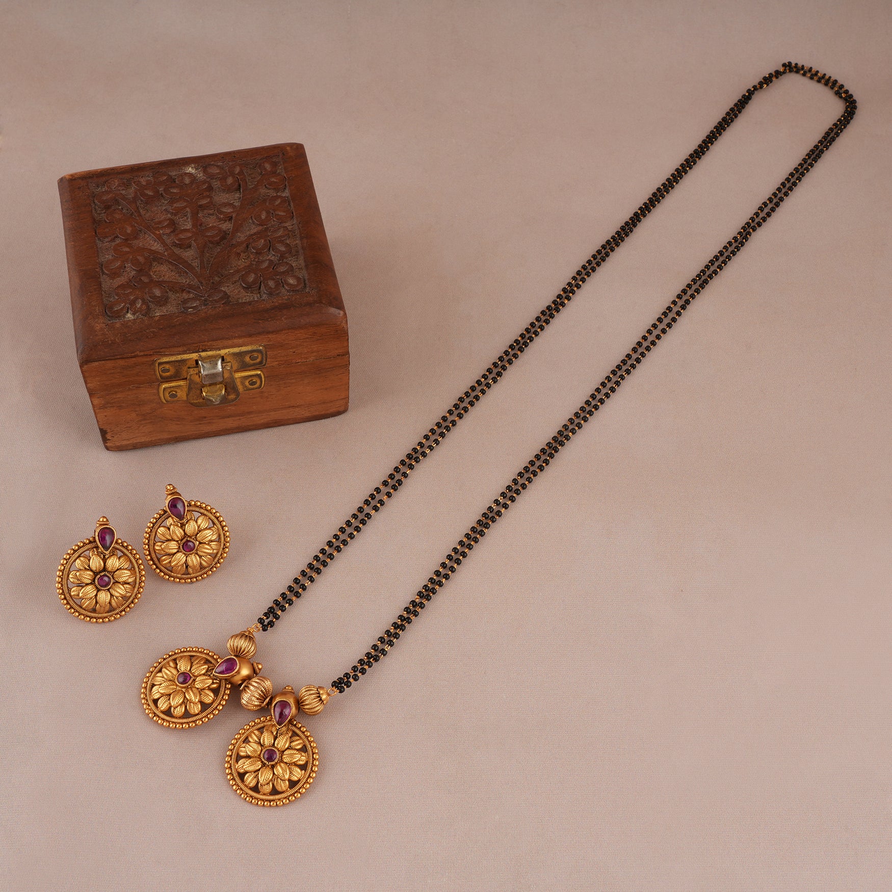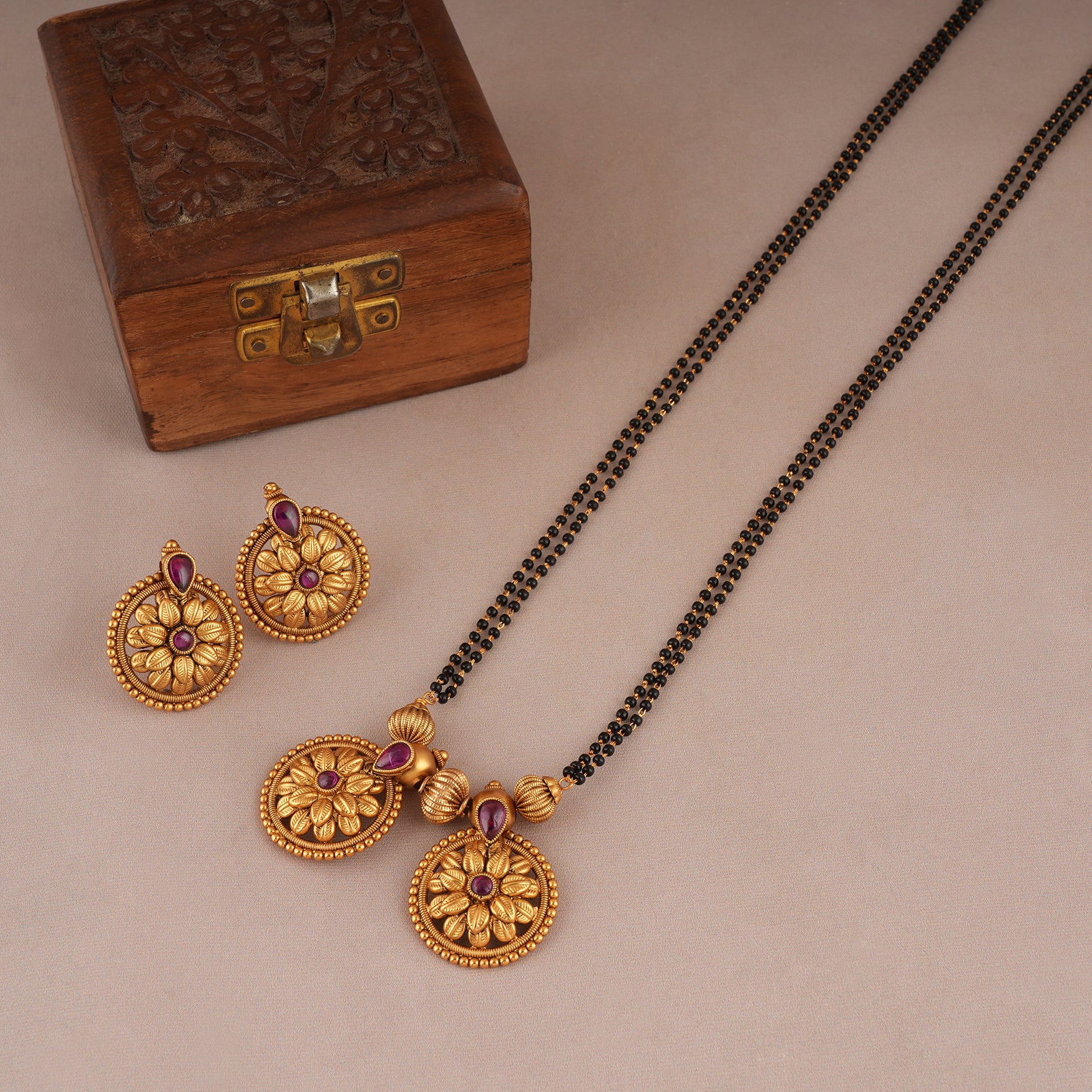 Stunning antqiue gold floral ruby long mangalsutra set