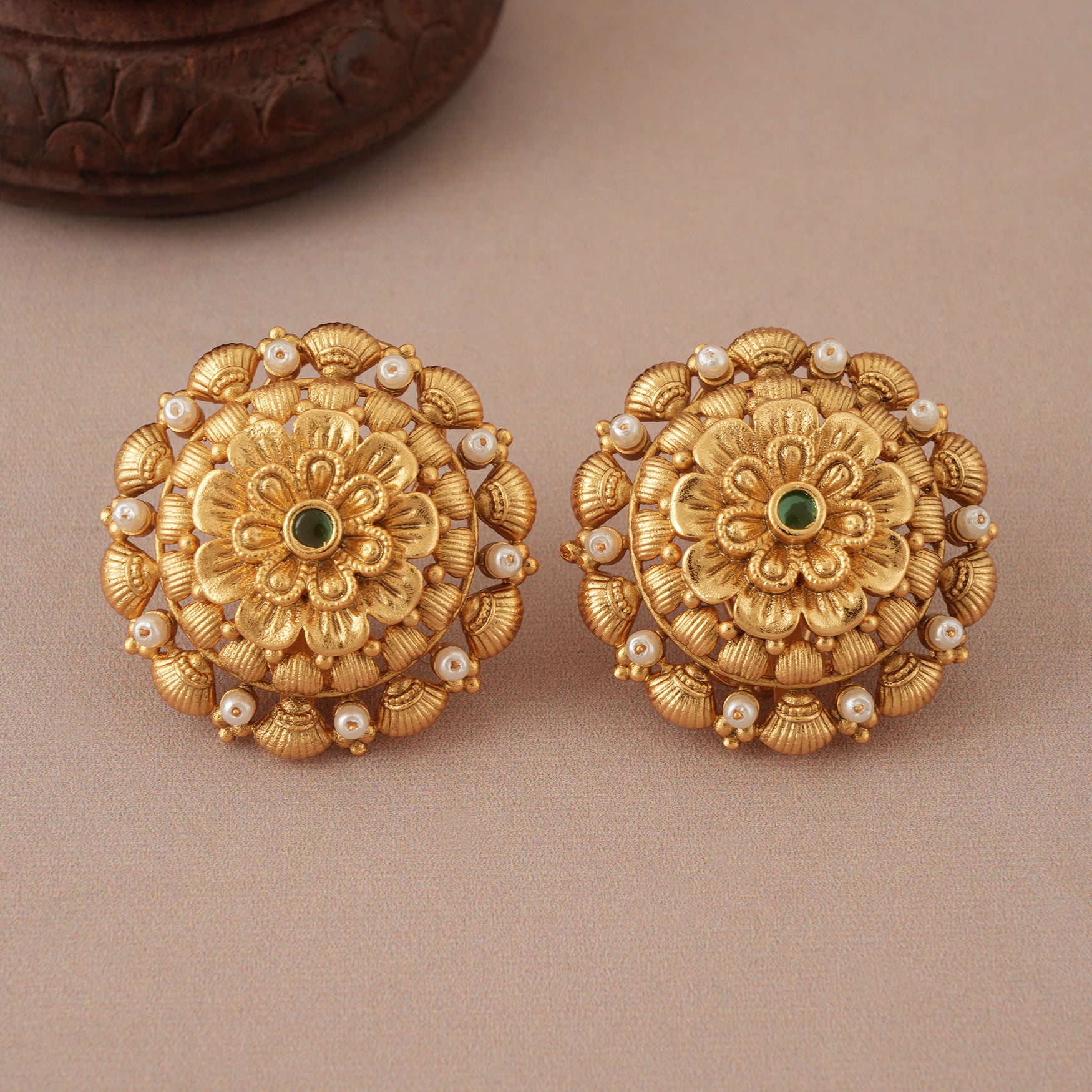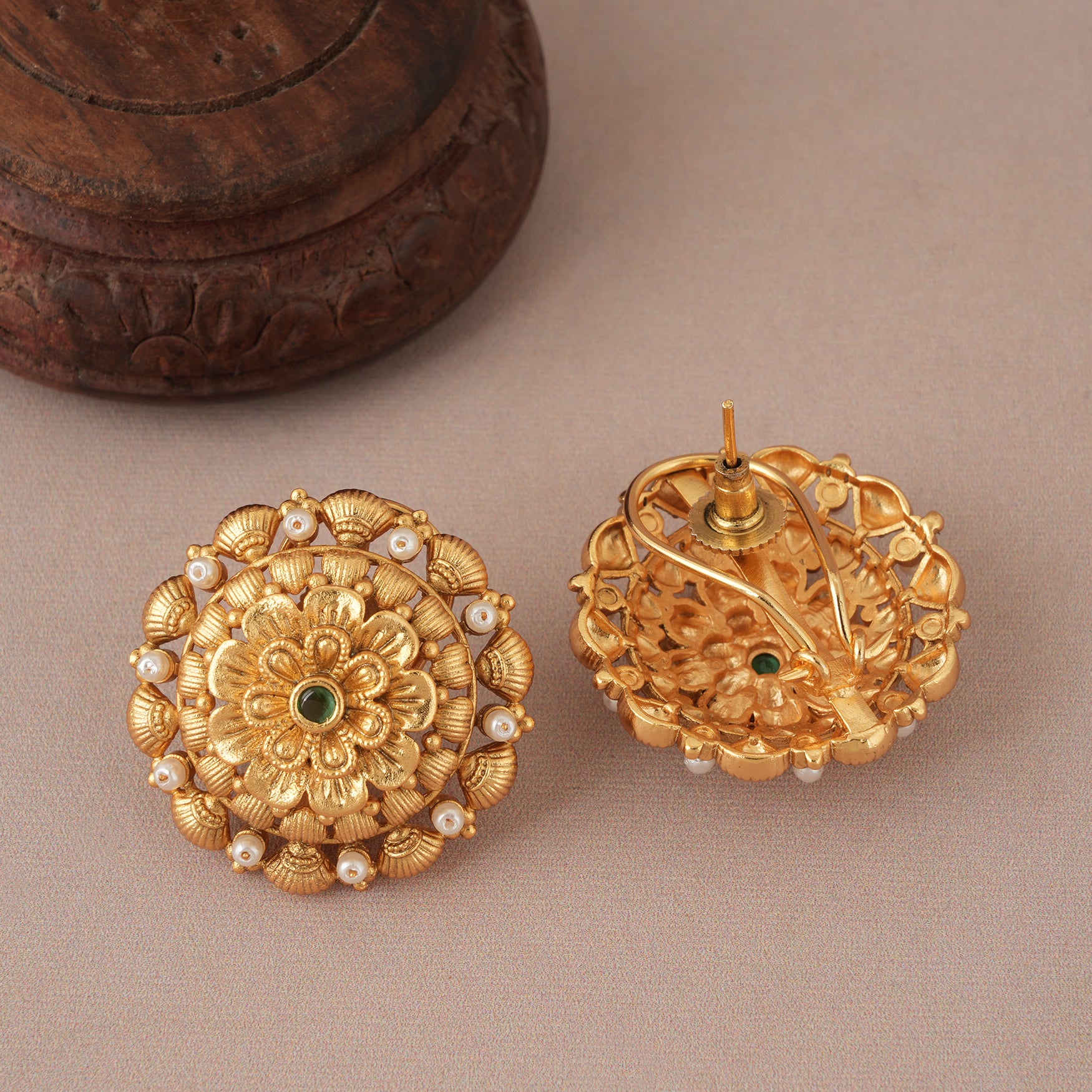 NOTE: These Stunning big antique gold pearl stud earring  have been crafted by hand and may have slight irregularities or imperfections in color or embellishment. These irregularities are the result of human involvement in the process and add to the finished product's charm while ensuring you have a one-of-a-kind piece.