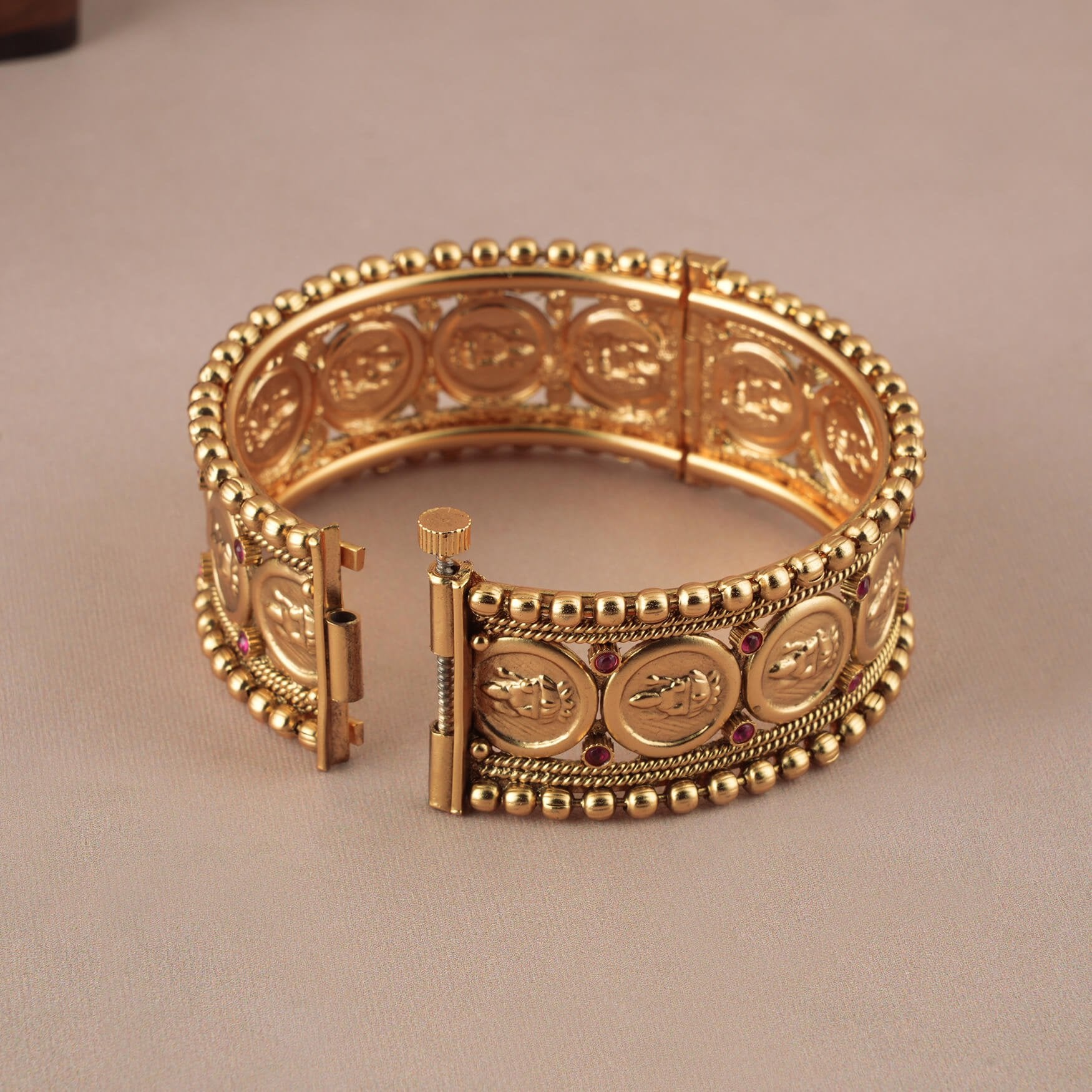 Stunning broad antique gold stone openable kada