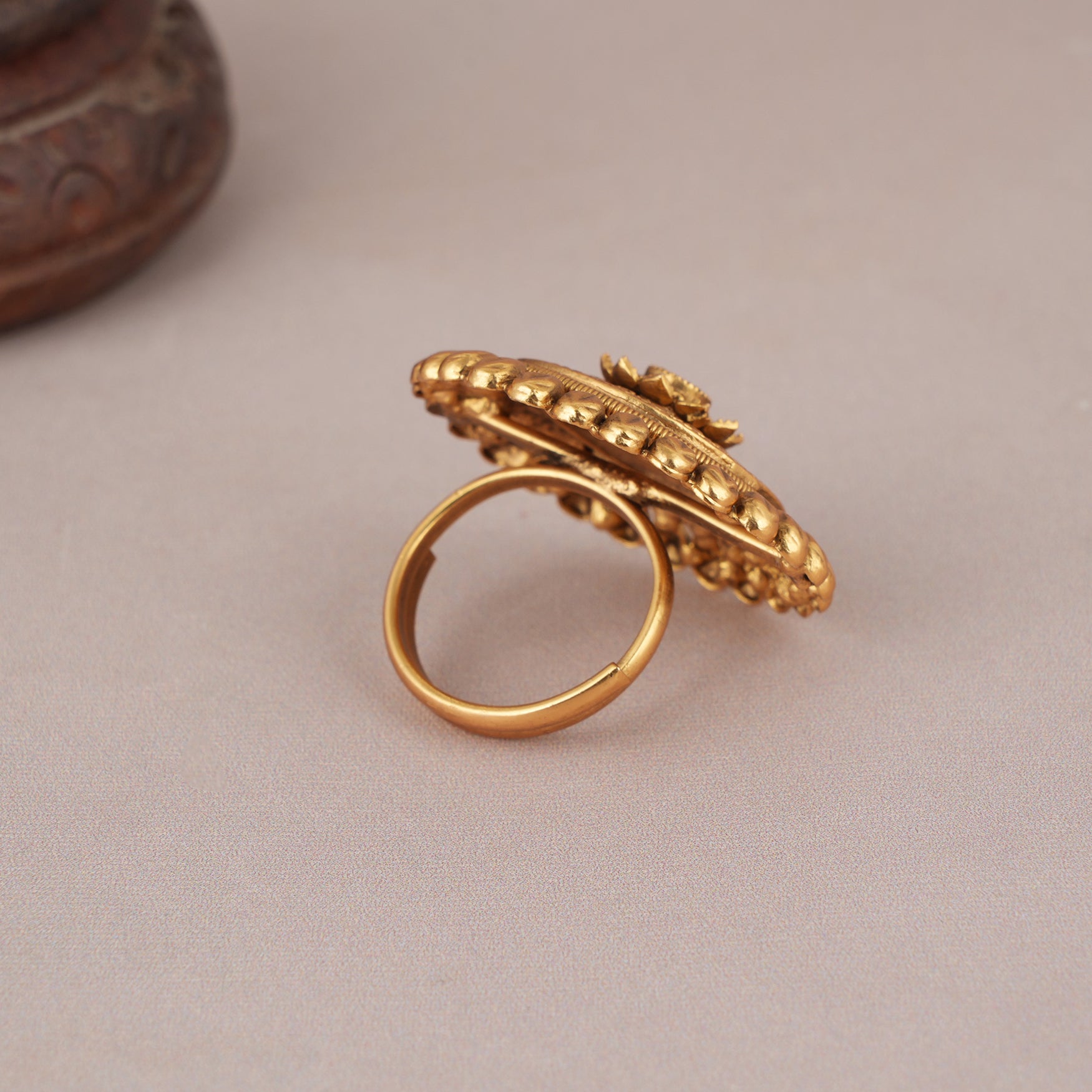 NOTE: This has been crafted by hand and Beautiful antique gold plain floral finger ring have slight irregularities or imperfections in color or embellishment. These irregularities are the result of human involvement in the process and add to the finished product's charm while ensuring you have a one-of-a-kind piece.