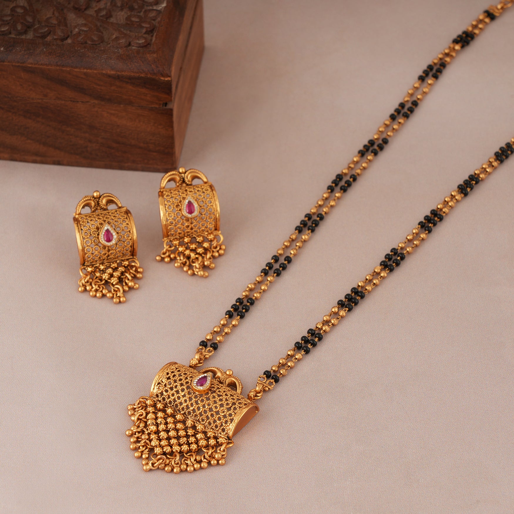 Buy Stunning filigree gold plated mangalsutra set for women  and get free shipping even on Cash on Delivery.