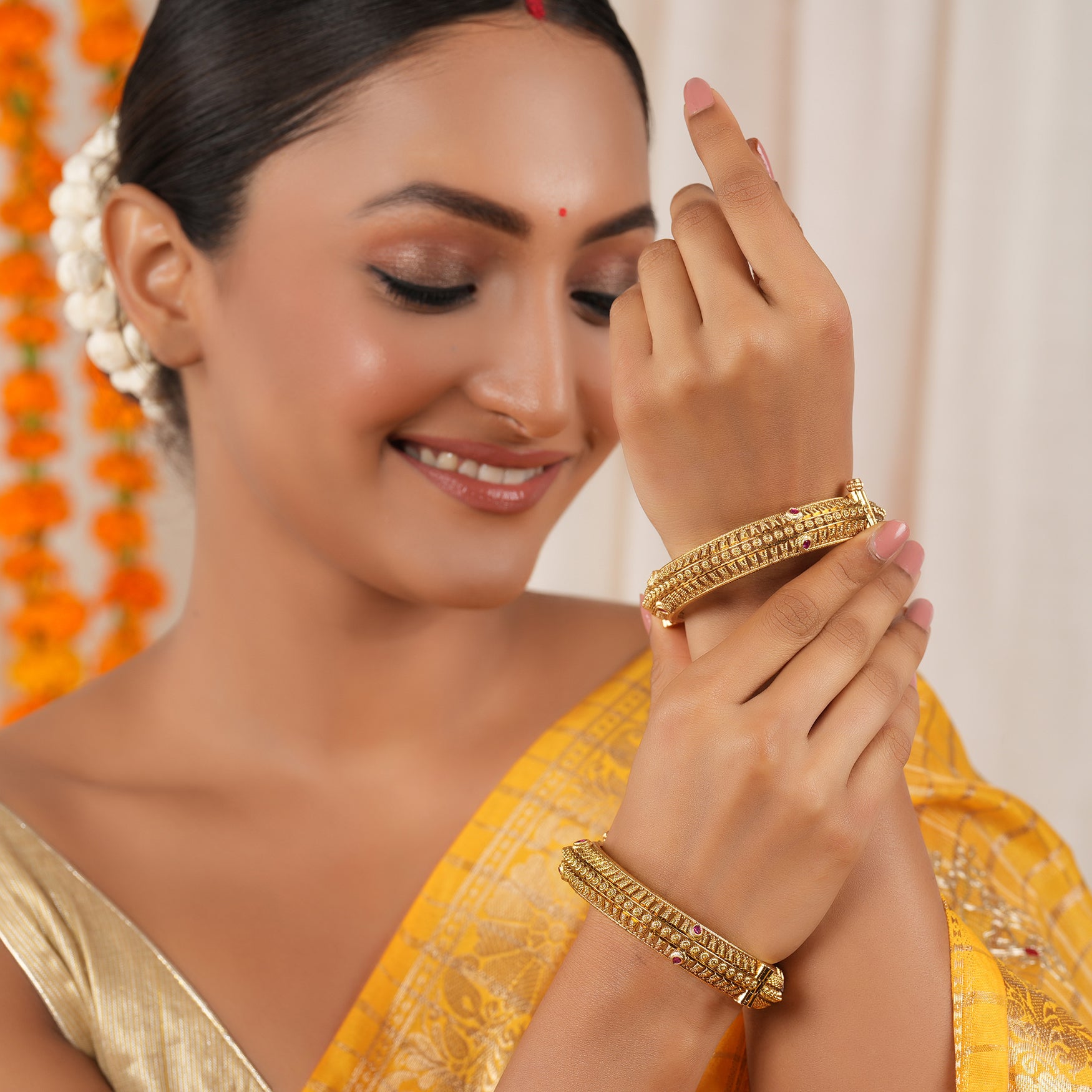 NOTE: This Stunning high gold plated bangle set for women has been crafted by hand and may have slight irregularities or imperfections in color or embellishment.